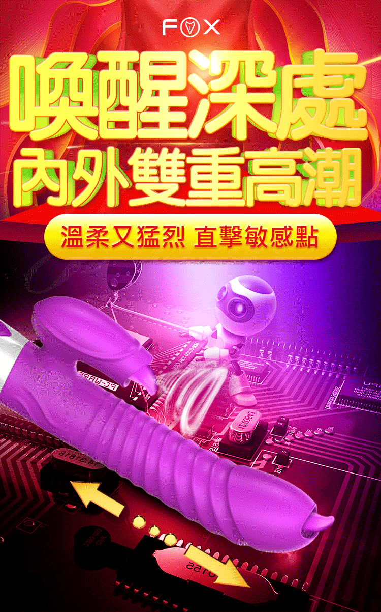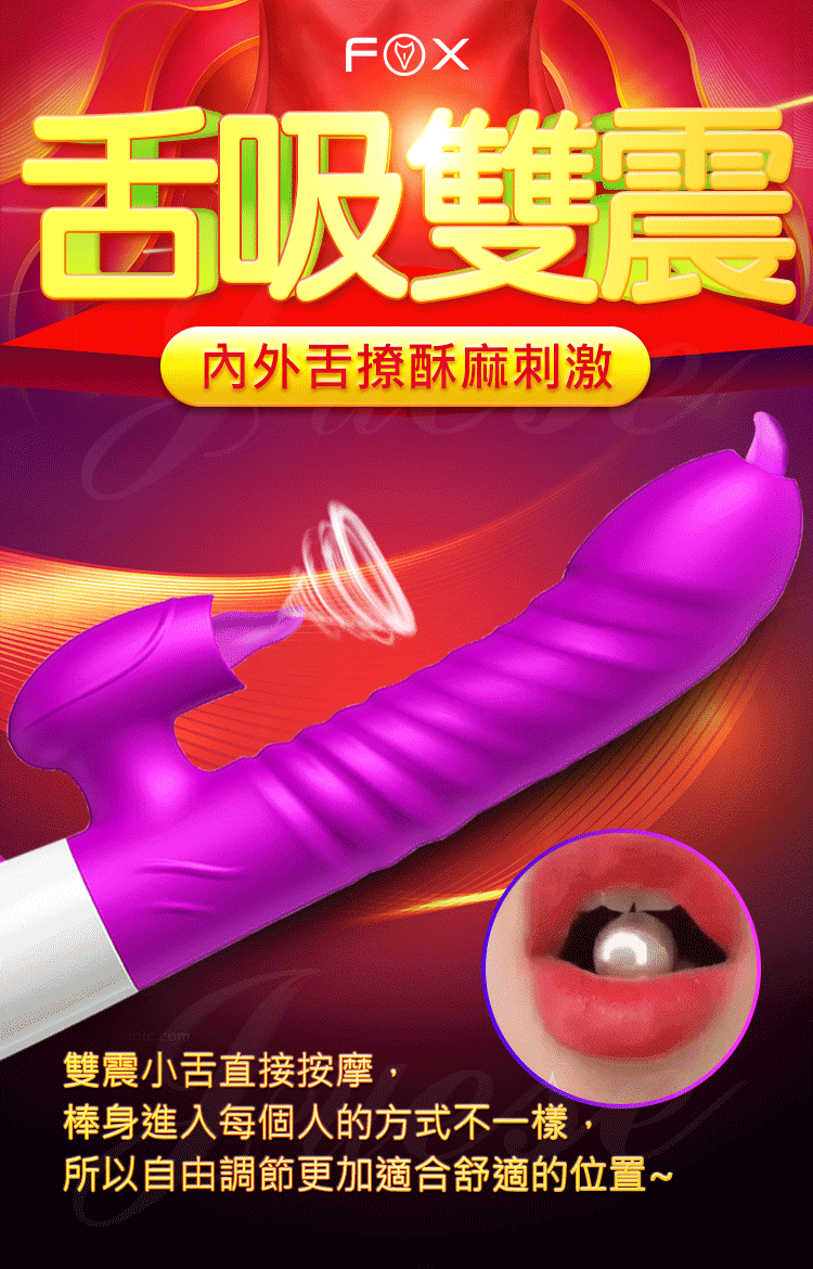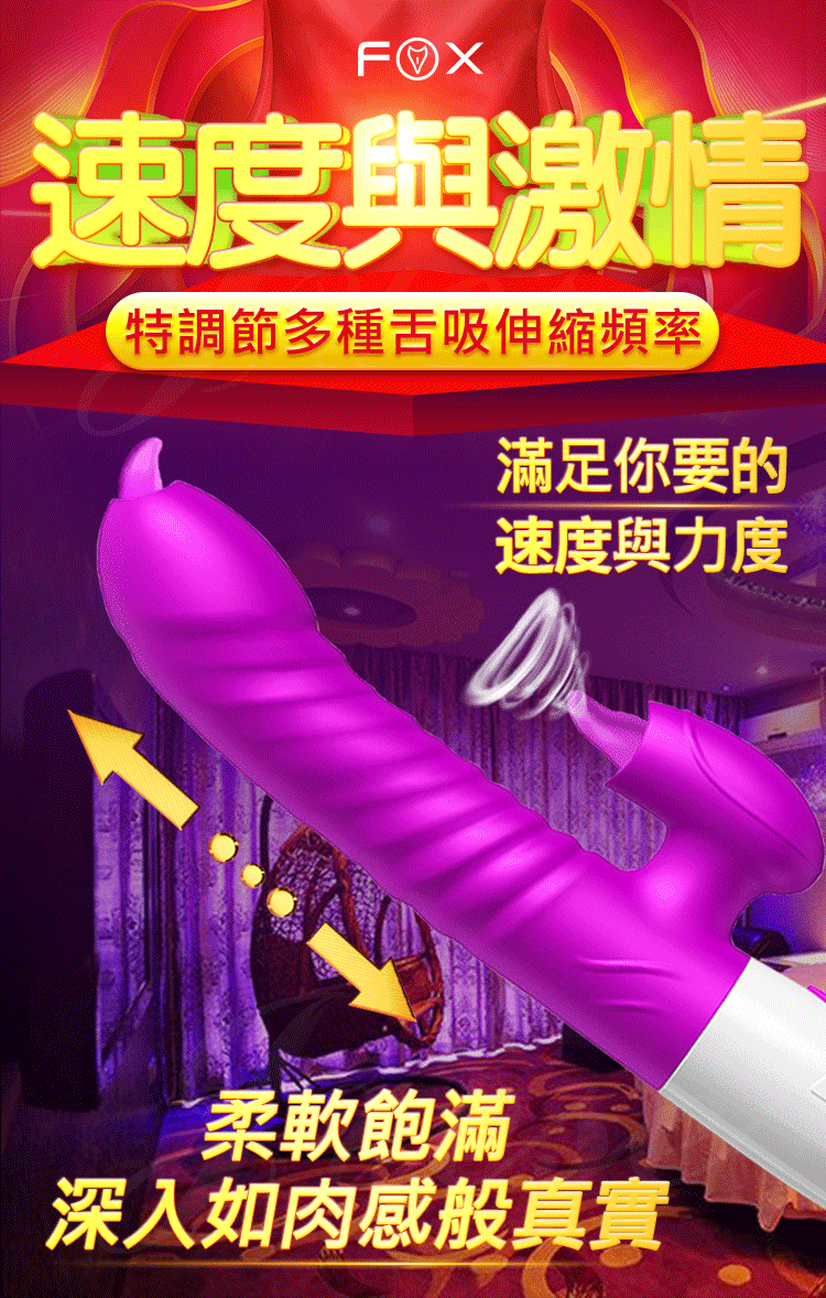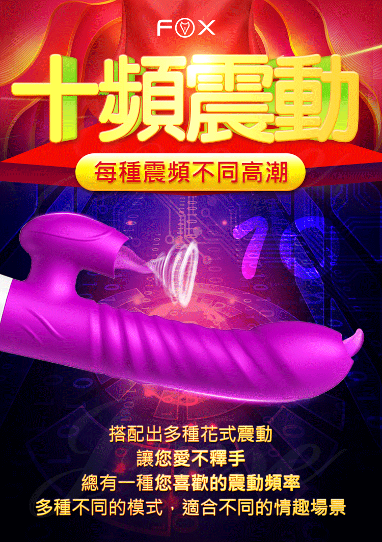 英國FOX-炫麗V10 3速7頻伸縮搖擺加溫雙舌舐震動棒-紫