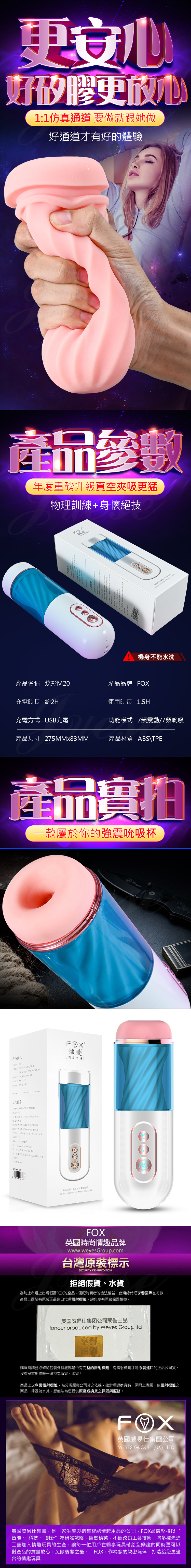 英國FOX-炫影M20 7段變頻智能裹吸互動發聲震動自慰杯