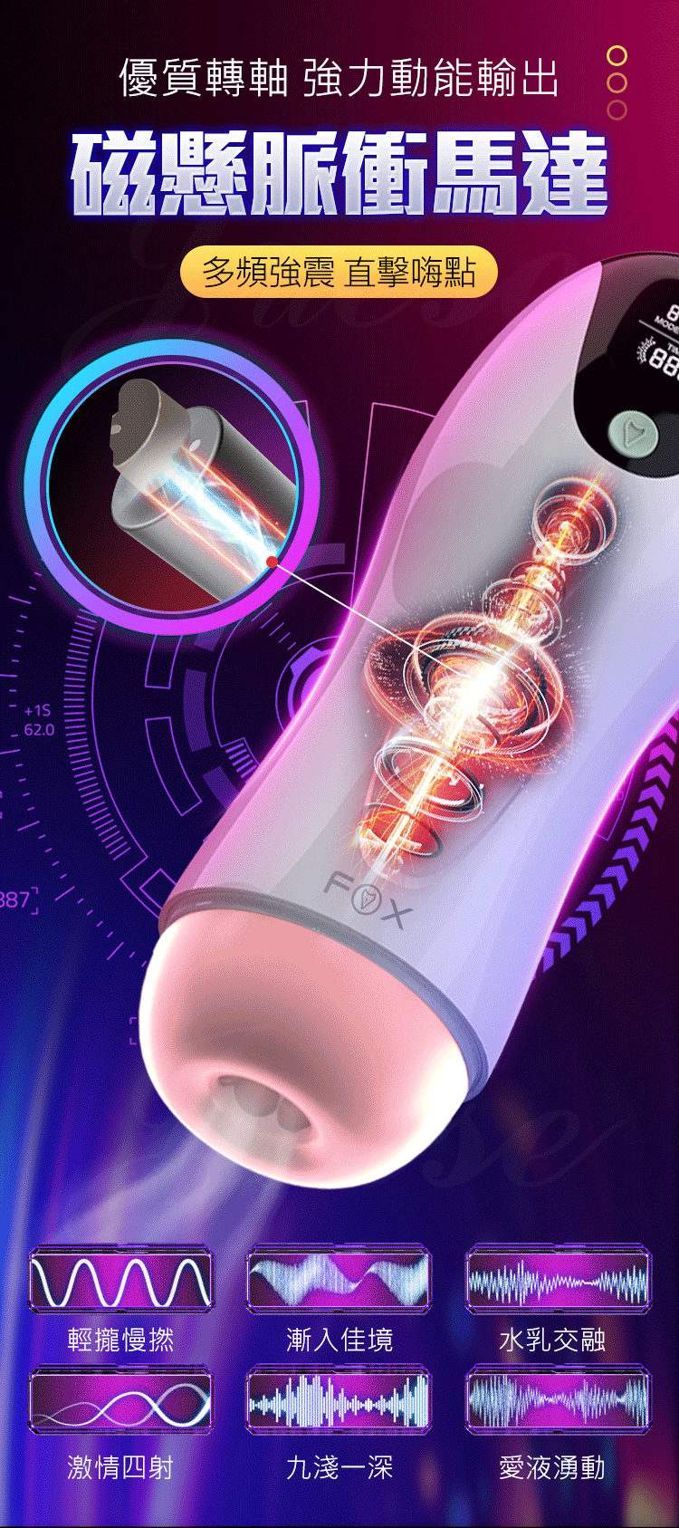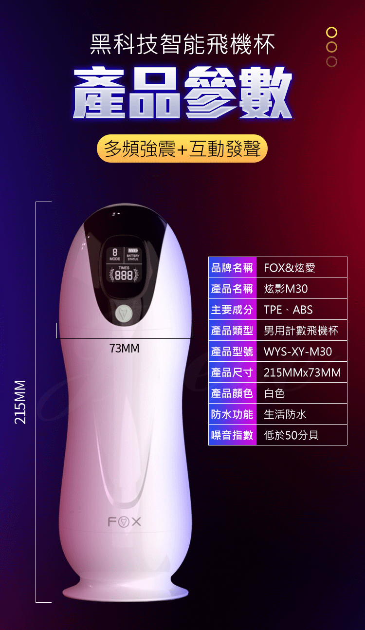 英國FOX-炫影M30 8段變頻震動發聲智能計數電動自慰杯