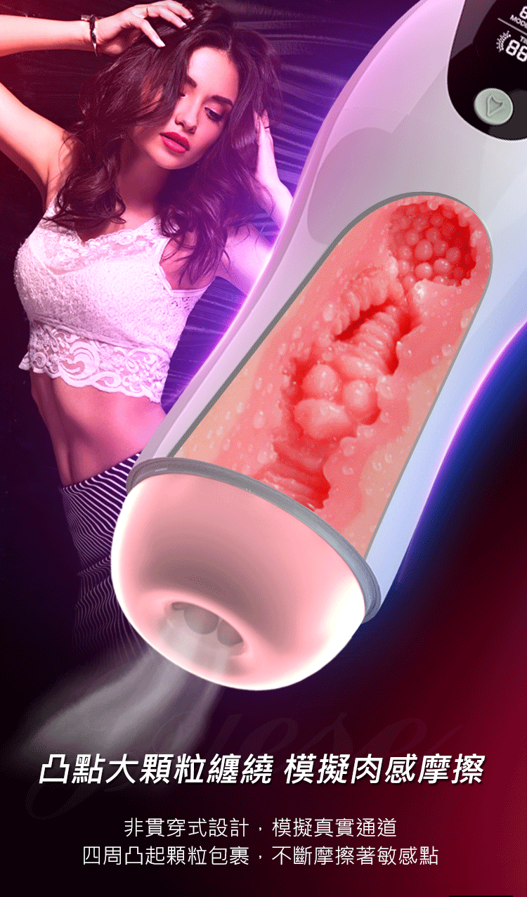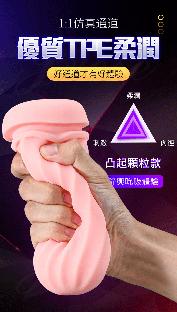 凸點大顆粒纏繞,模擬肉感摩擦,非貫穿式設計,模擬真實通道,四周凸起顆粒包裹,不斷摩擦著敏感點。