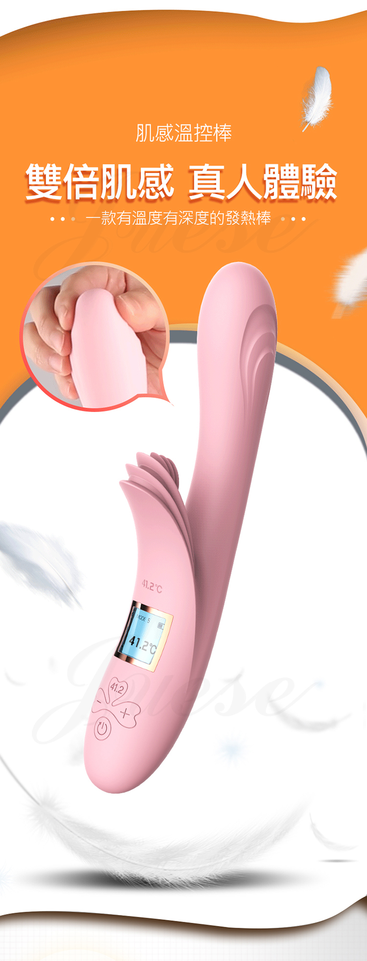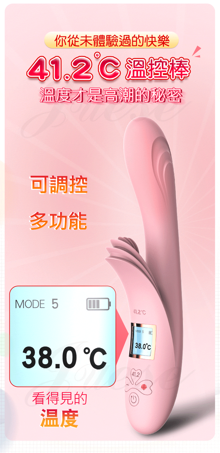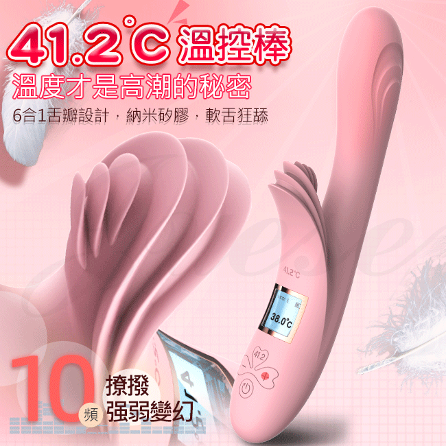 41.2°C 10段變頻舌瓣狂舔溫控震動矽膠按摩棒-櫻花粉