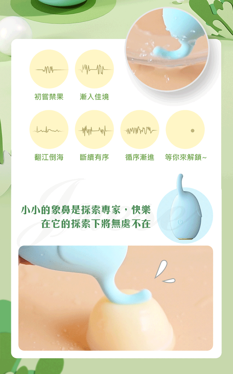 Cute Funny萌寵象 10段變頻親膚柔軟充電式矽膠震動按摩器