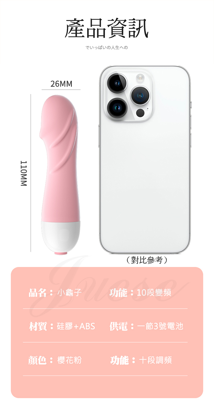 小龜子 10段變頻仿真皺摺迷你震動按摩棒-粉(特)