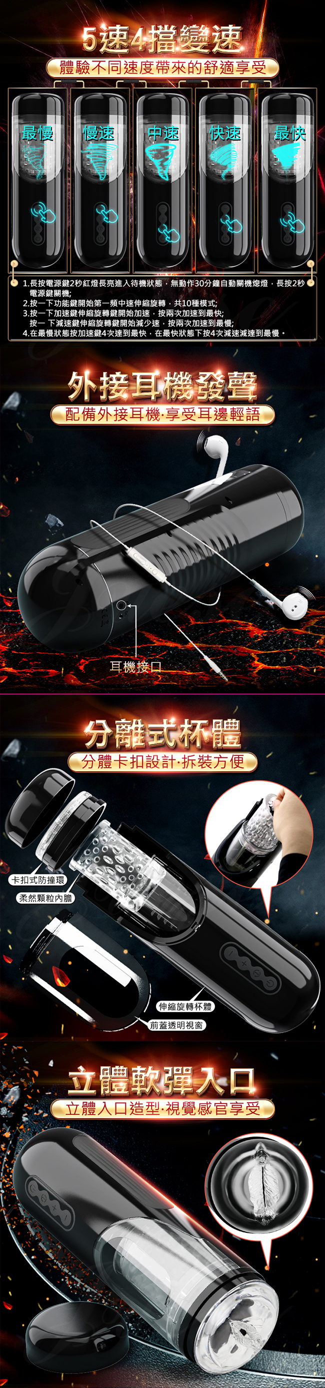 羅蕾萊 10x5段變頻活塞旋轉發聲鍛煉自慰杯