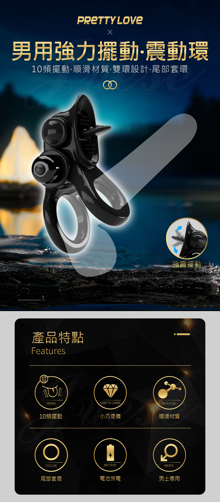 激情 10段變頻舌舔雙環矽膠震動鎖精環