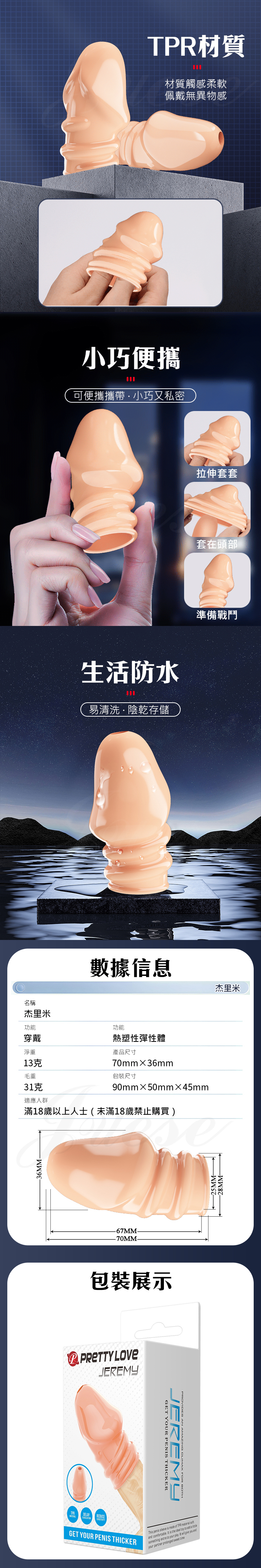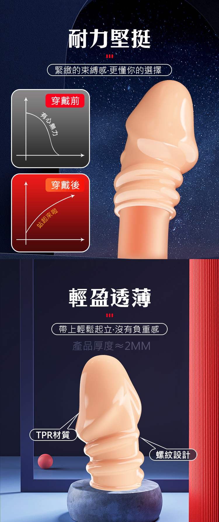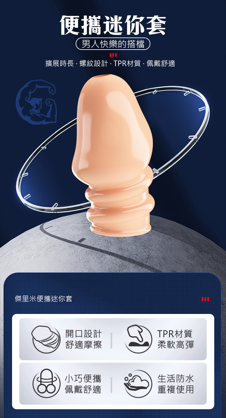 擴展時長 · 開口設計 · TPR材質 · 佩戴舒適