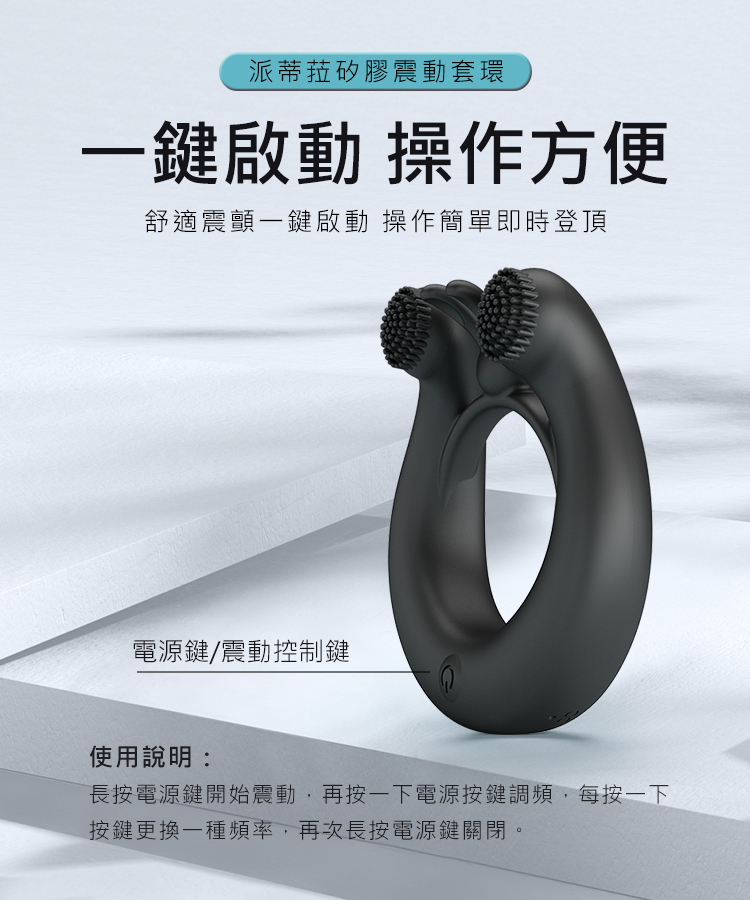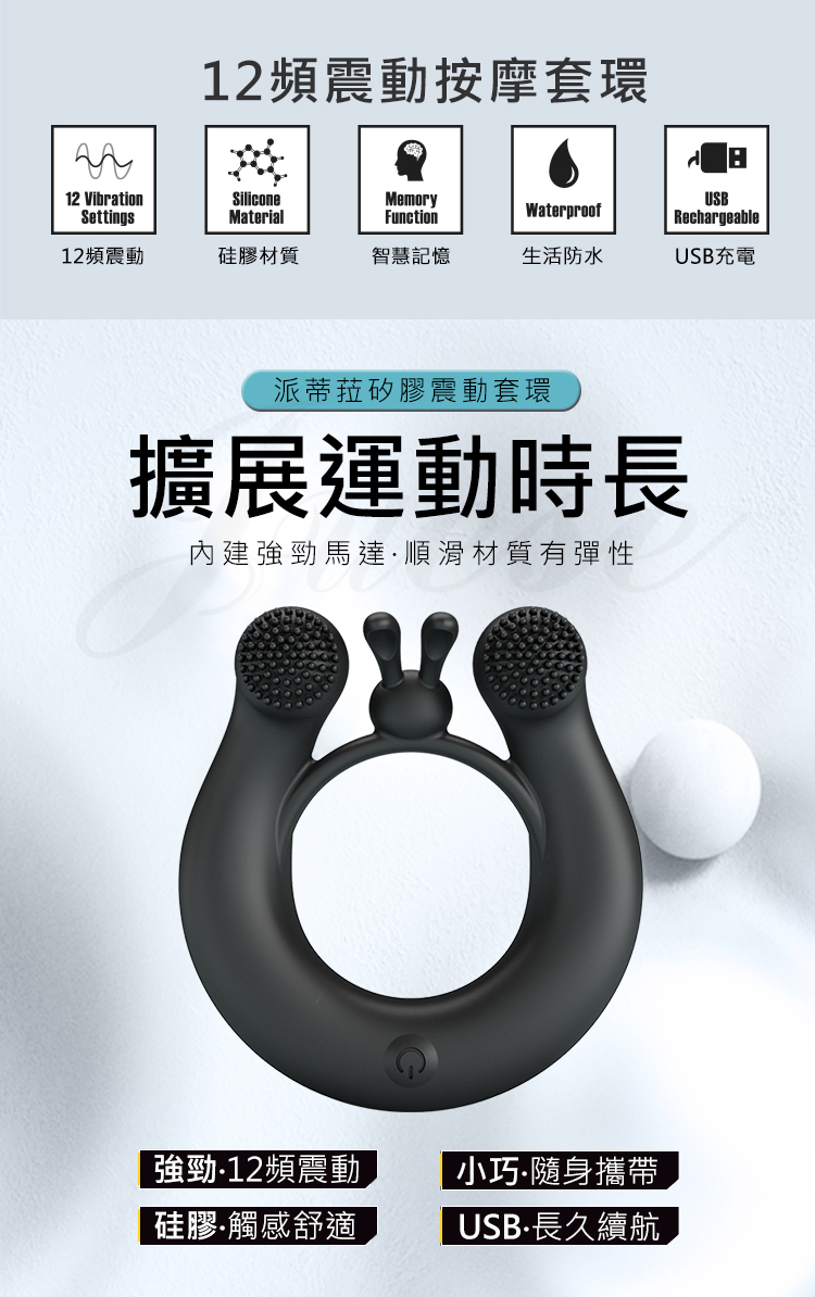 12頻震動男女共用套環,內建強勁馬達,順滑材質有彈性。