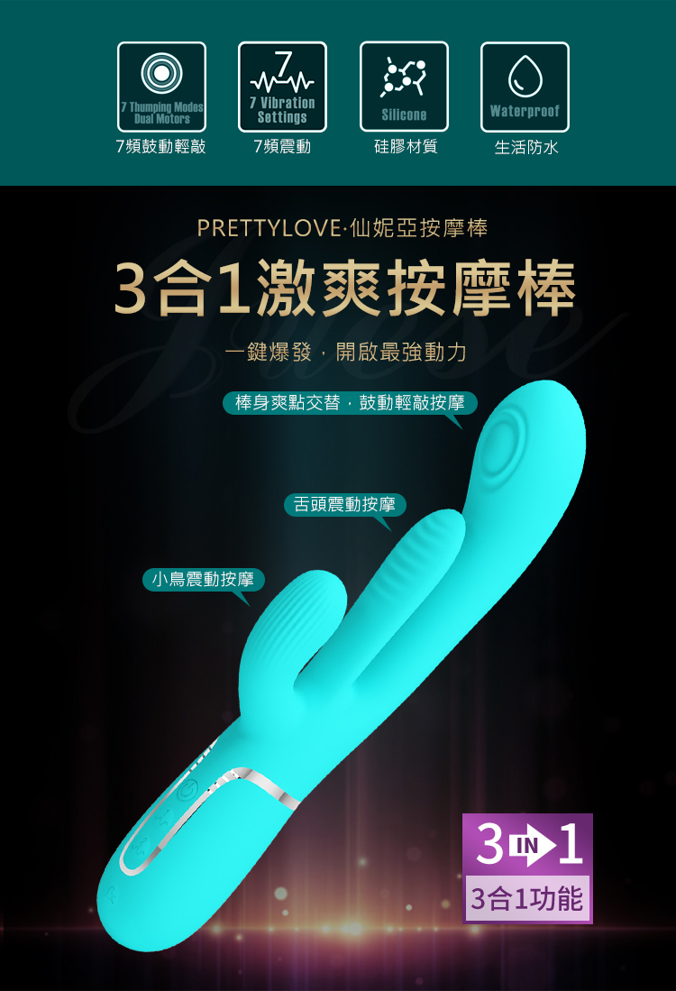 3合1激爽按摩棒,棒身爽點交替,鼓動輕敲按摩,內外夾擊,快樂擊穿全身。