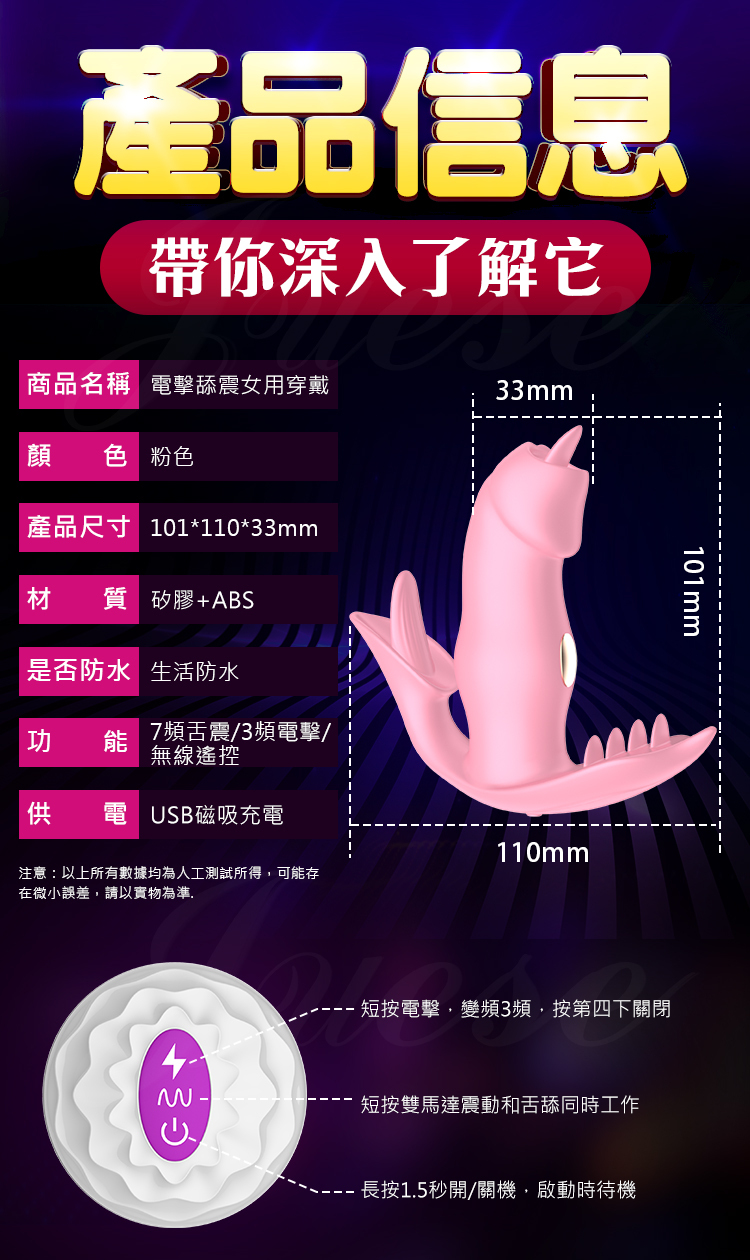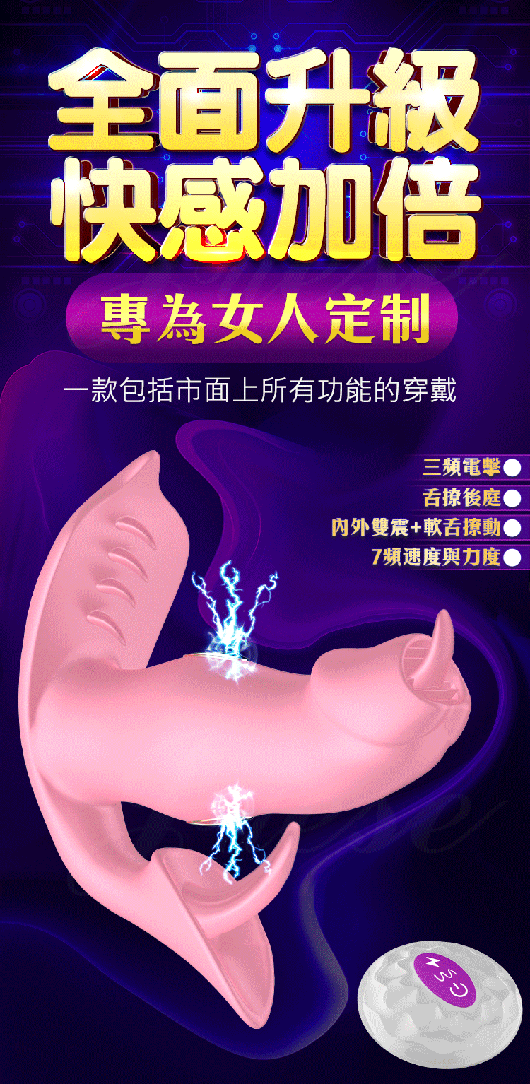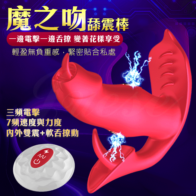 魔之吻 3頻電擊+7頻變頻 軟舌撩動遙控矽膠震動棒-紅
