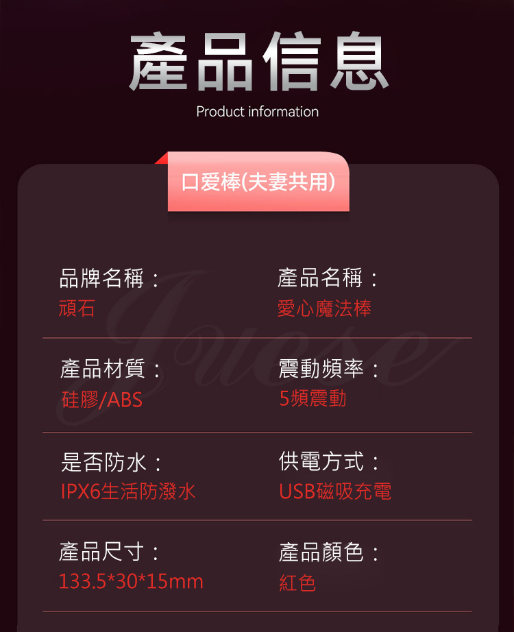 3、本商品僅供情侶間使用,使用前後請注意清潔衛生。