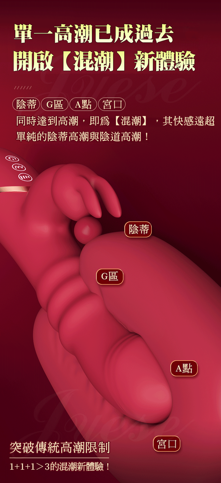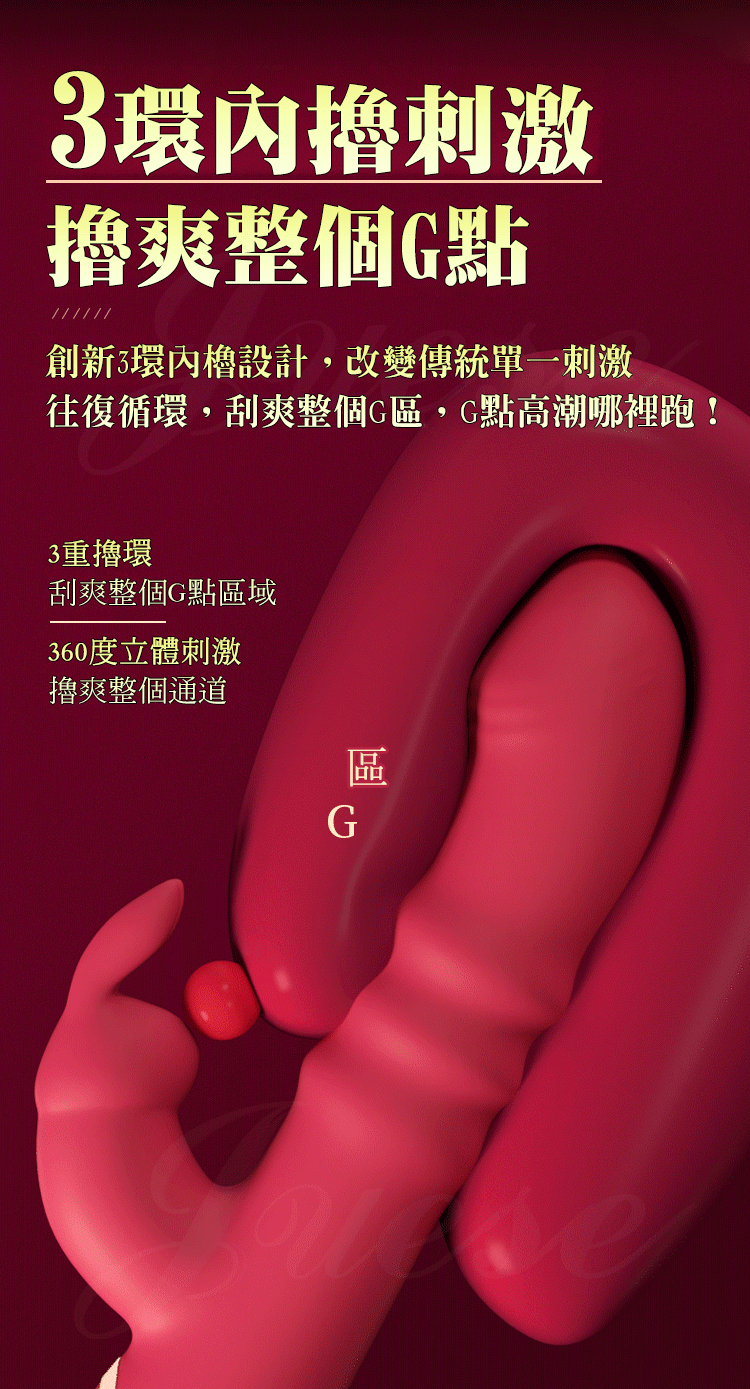 創新3環內櫓設計,改變傳統單一刺激往復循環,刮爽整個G區,G點高潮哪裡跑!同時達到高潮,即為【混潮】,其快感遠超單純的陰蒂高潮與陰道高潮!