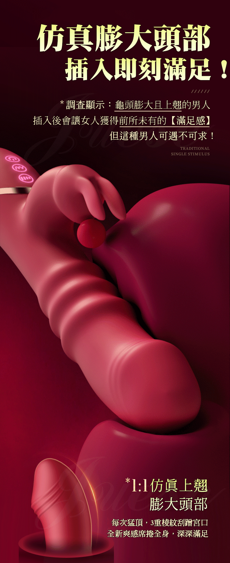 1:1仿真上翹膨大頭部,每次猛頂,3重棱紋刮蹭宮口,全新爽感席捲全身,深深滿足。