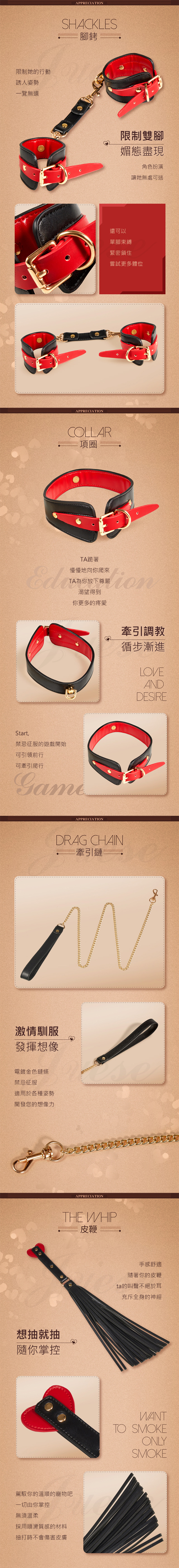 SM性虐捆綁 皮革4件捆綁套裝-黑紅色