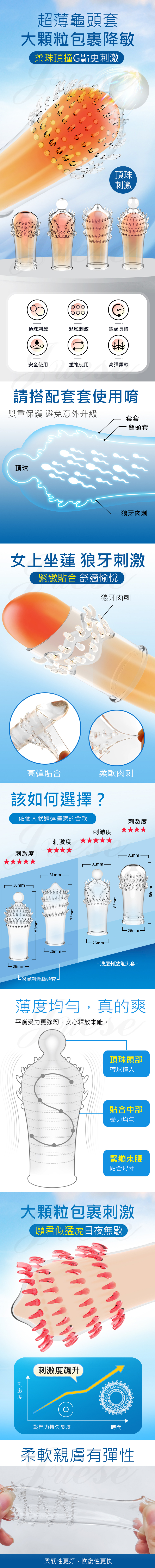 超薄龜頭套,大顆粒包裹降敏,柔珠頂撞G點更刺激。