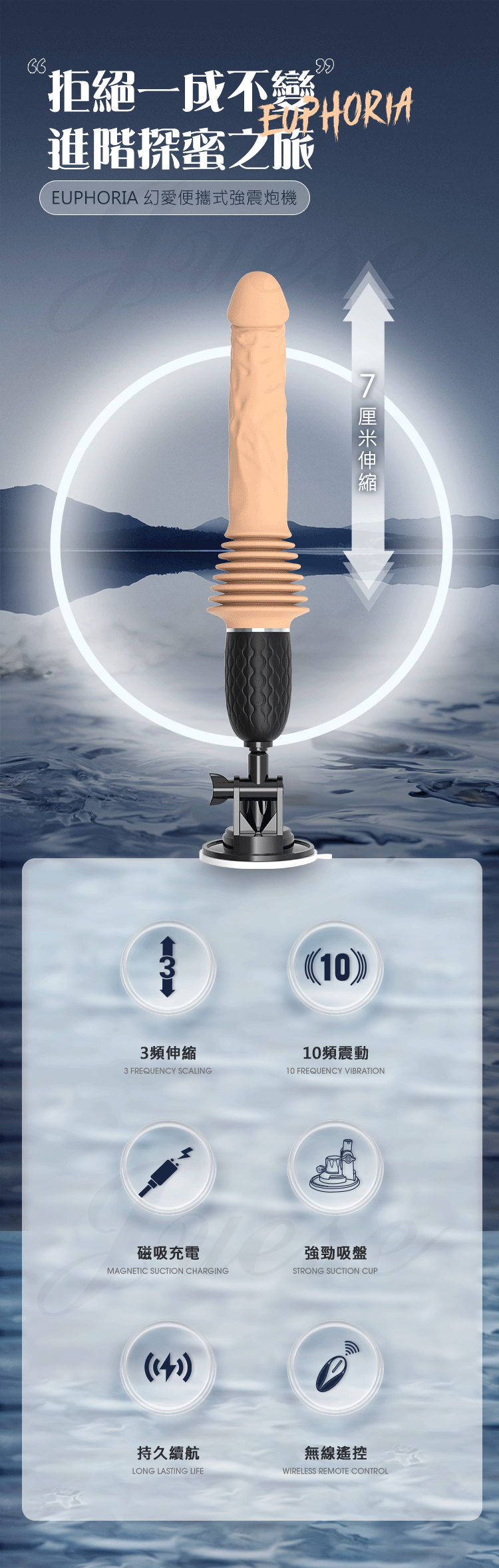 EUPHORIA高強度仿真伸縮,70次/分智能伸縮抽動科技,威猛震感,抽動雙模式,比真男人更刺激。