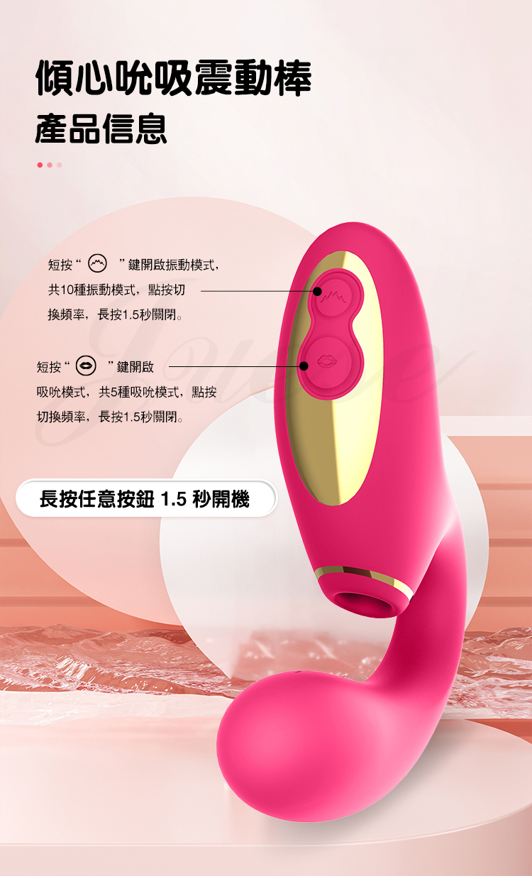 傾心 5段吮吸+10段震動雙重高潮USB充電式震動按摩棒