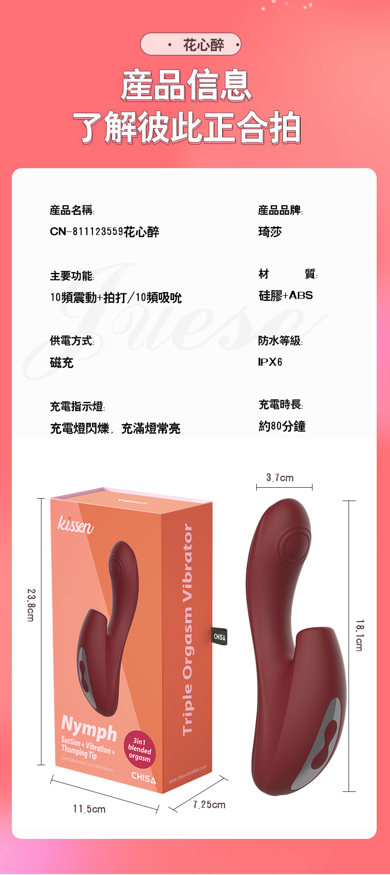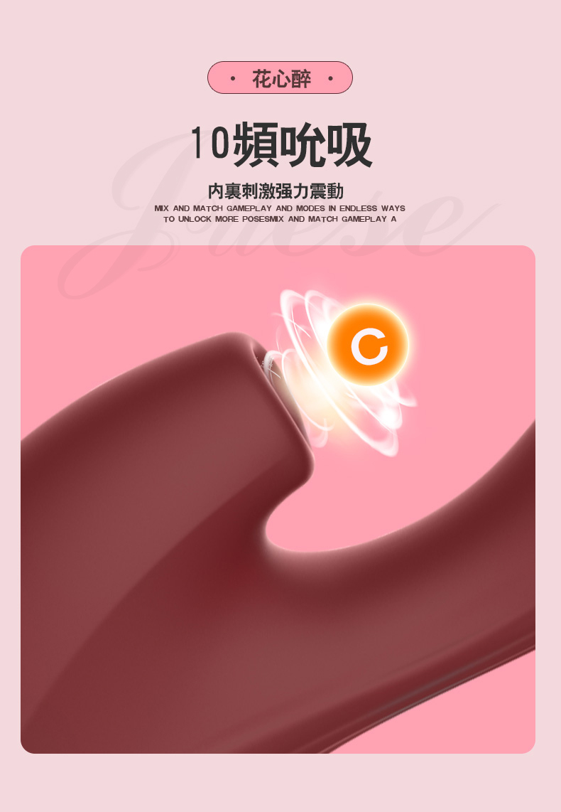 花心醉 10段吮吸+10段震動拍打內外多點USB充電式震動按摩棒