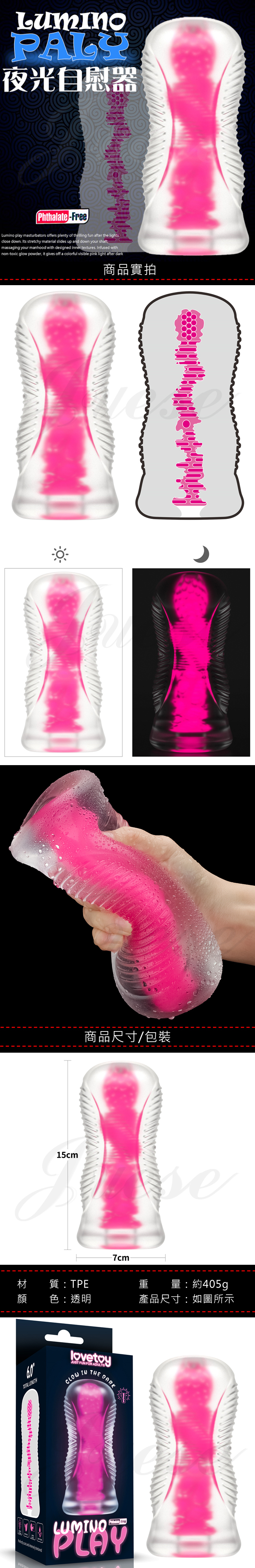 透過設計的內部紋理按摩您的男子氣概。注入發光粉,天黑後會發出彩色可見的粉紅色光芒,非常適合每晚撫摸。