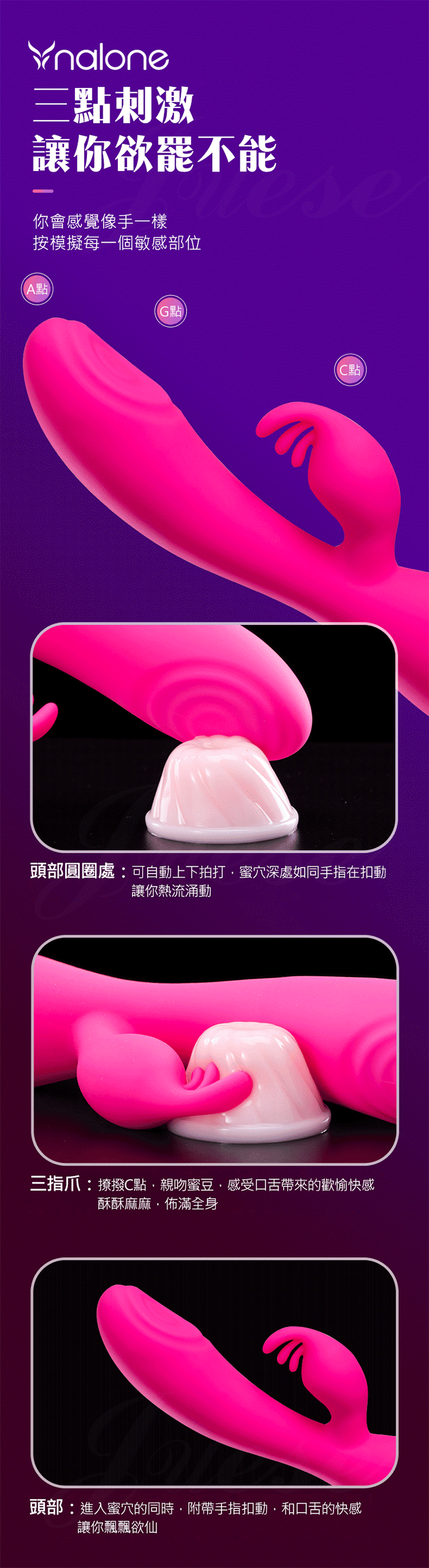 香港Nalone-魔動 7段變頻加溫震動頭部拍打按摩棒-玫紅