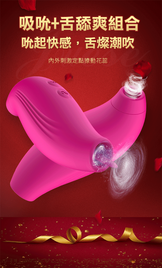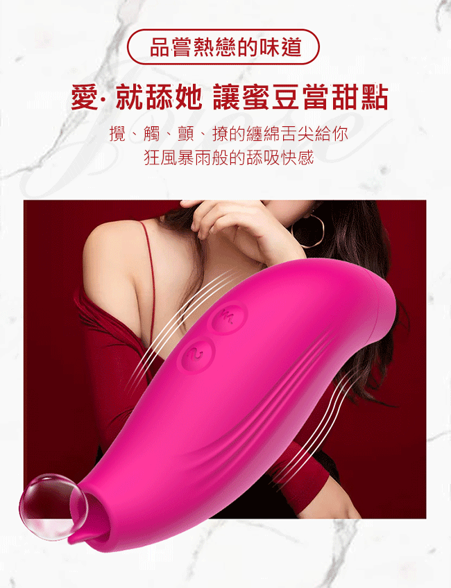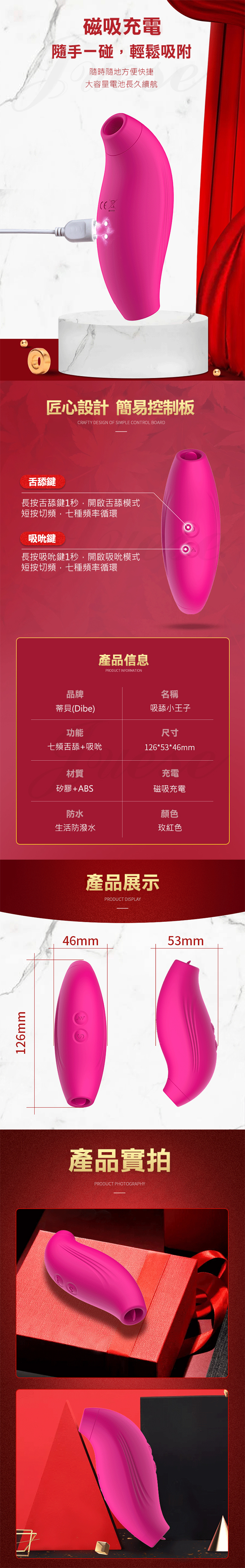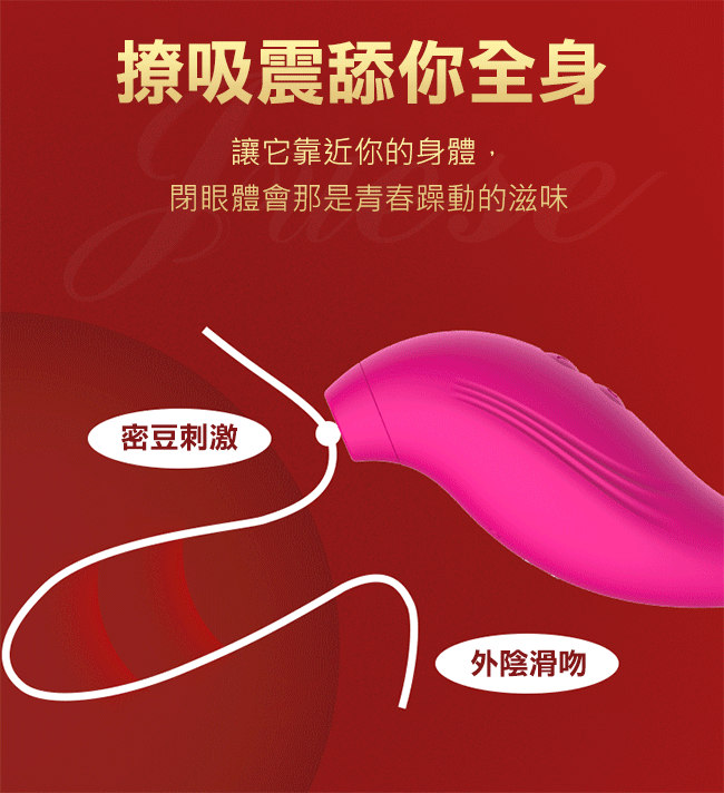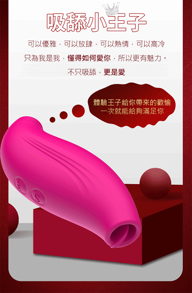 Dibe-吸舔小王子 7段變頻吮吸USB充電矽膠震動棒-玫紅色
