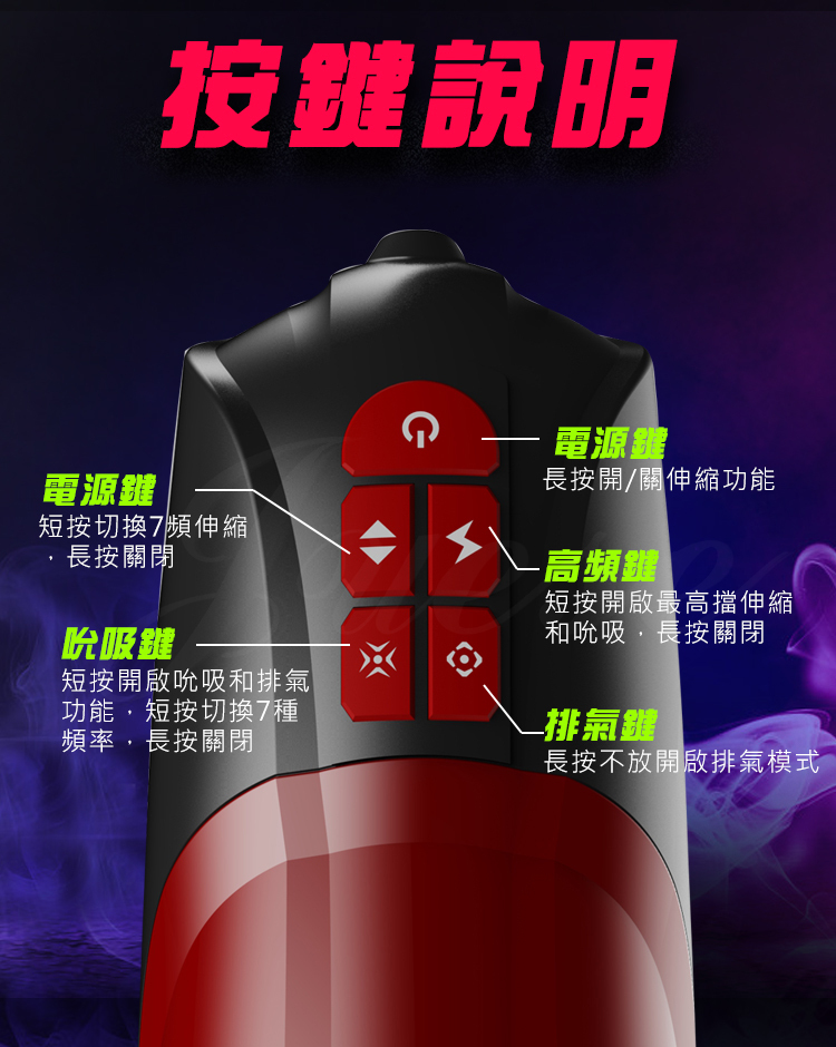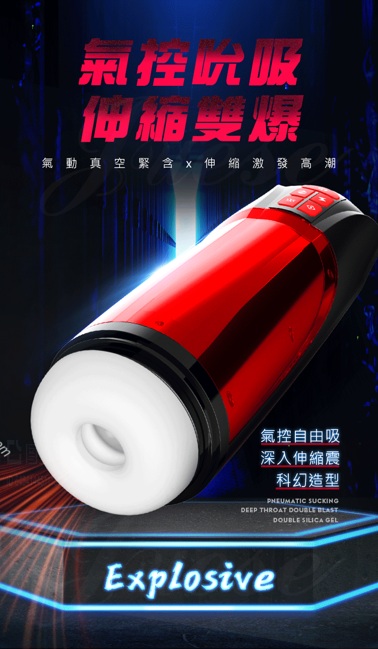 氣控吮吸、伸縮雙爆,氣動真空緊含x伸縮激發高潮。