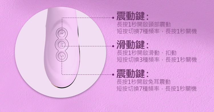 Dibe-熱戀 3頻扣動滑動+7頻震動一鍵洶涌USB充電按摩棒-紫