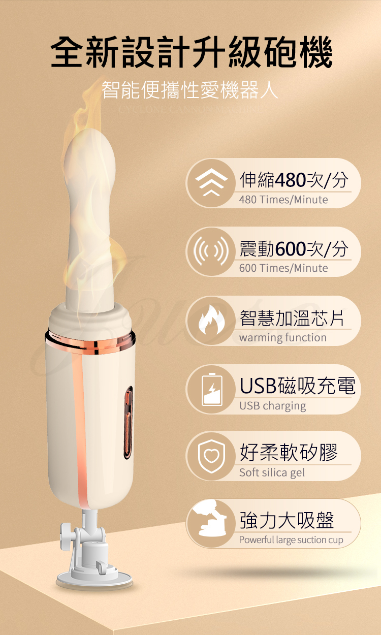 小鋼炮 7段變頻體感激情USB充電加溫吸盤震動老二砲機
