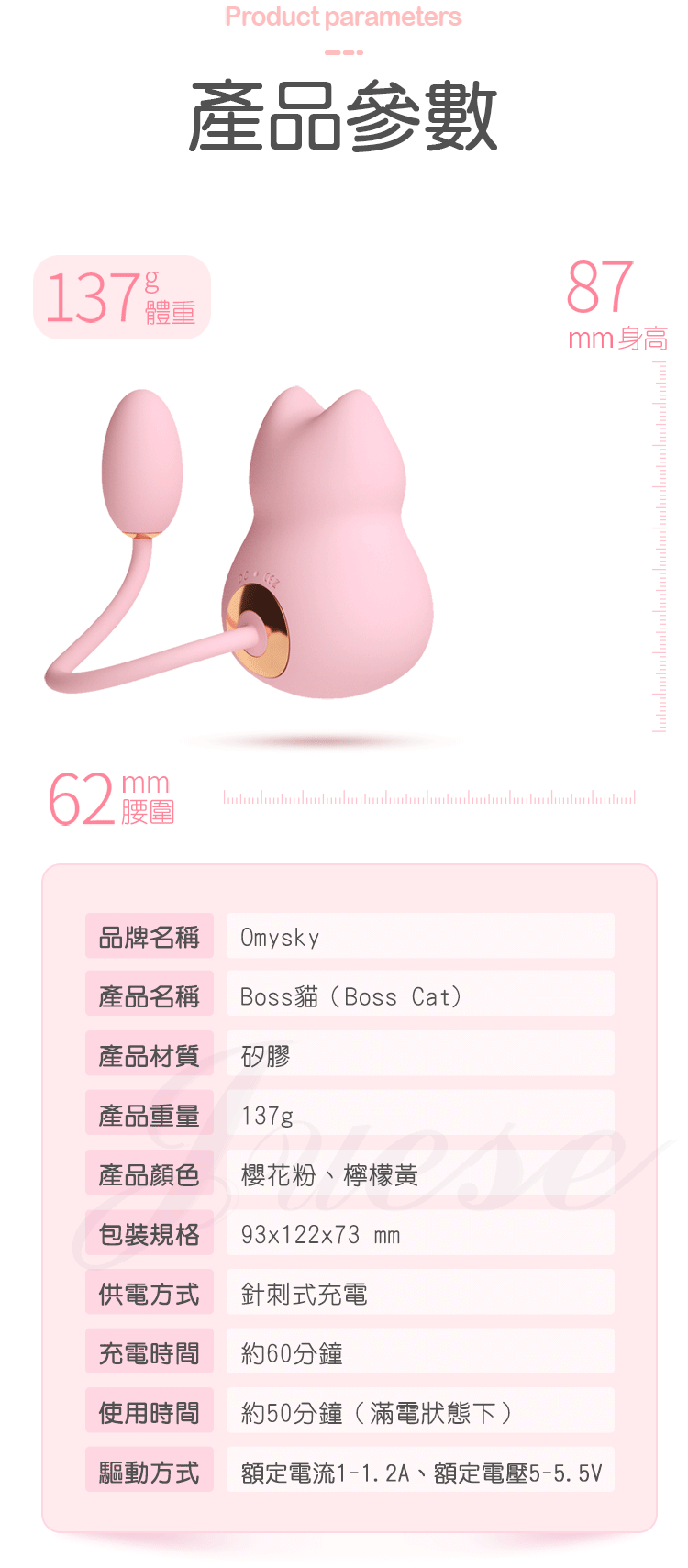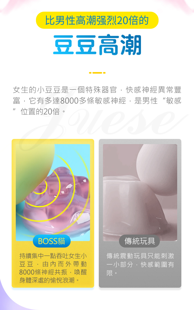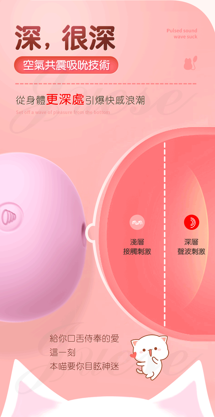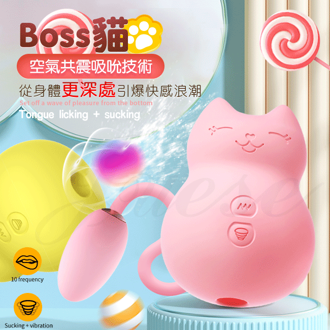 omysky-BOSS貓 10段變頻吸吮浪潮矽膠震動按摩器-蜜桃粉