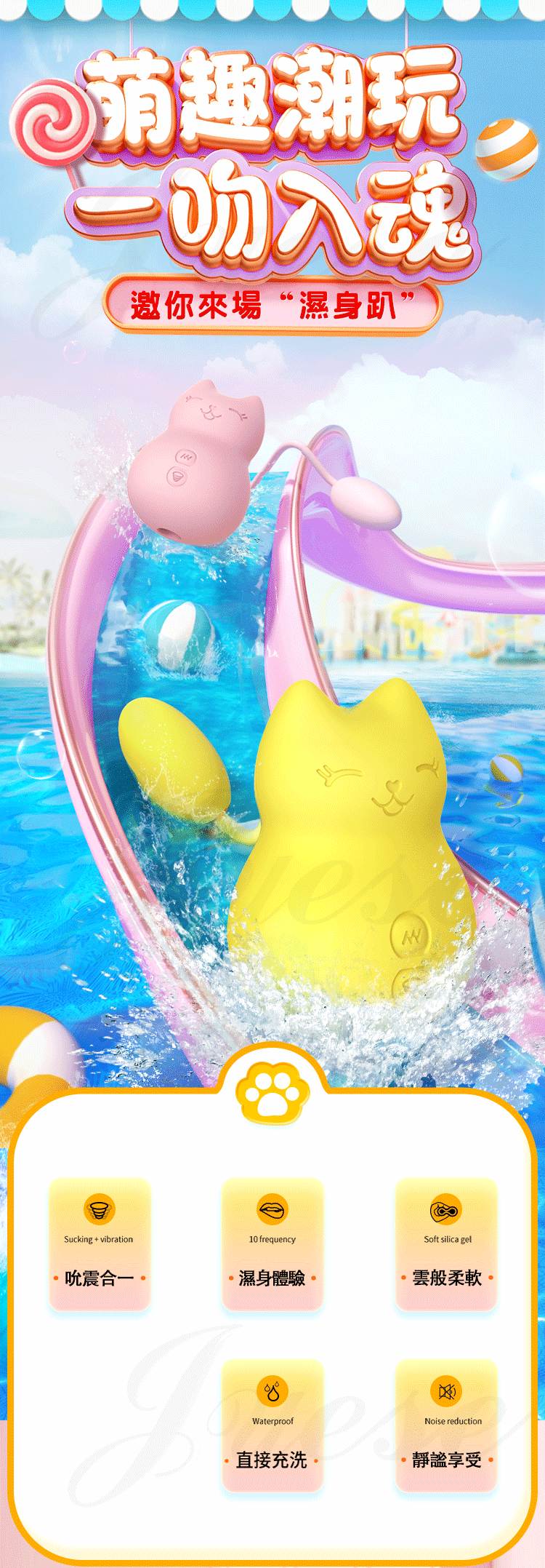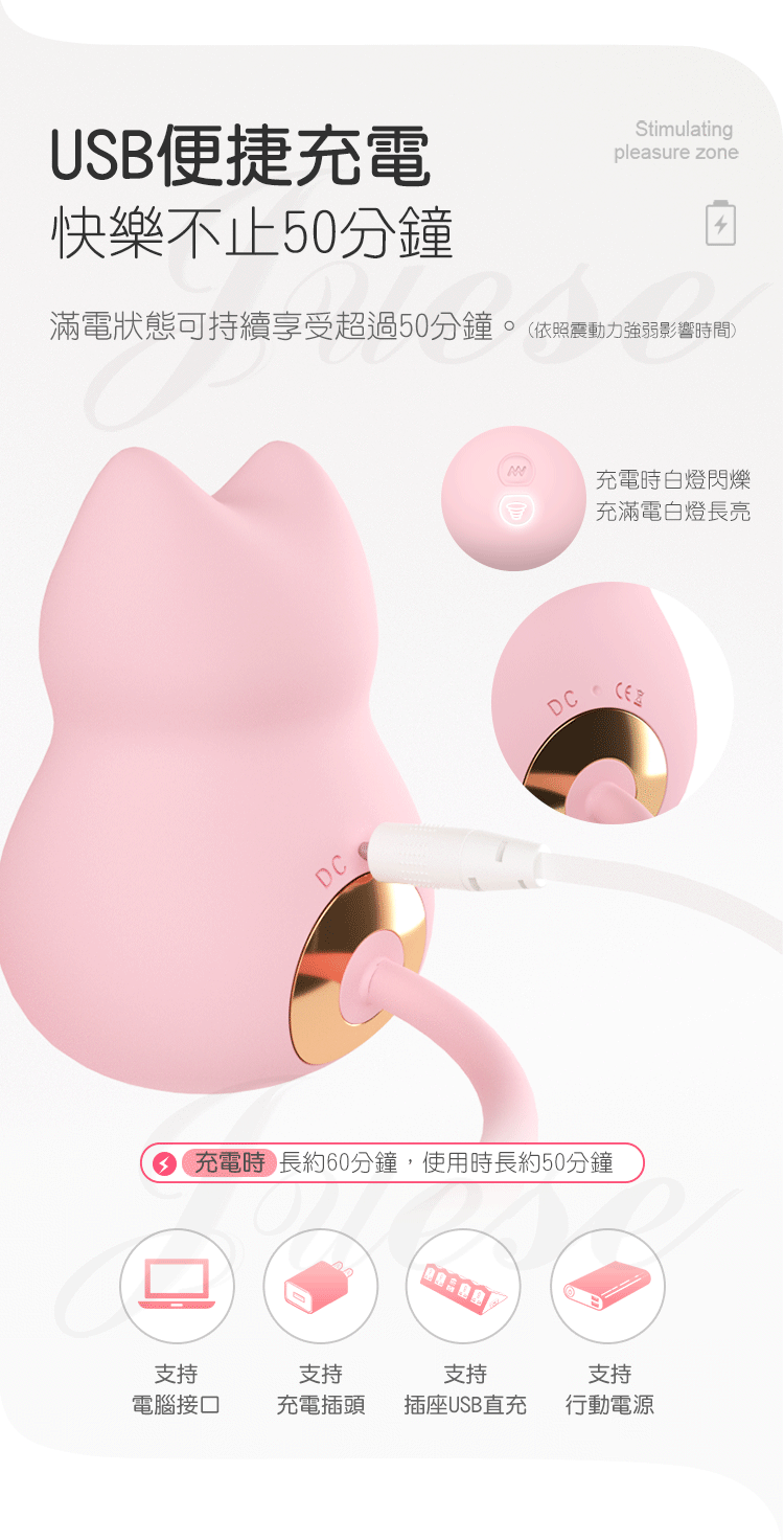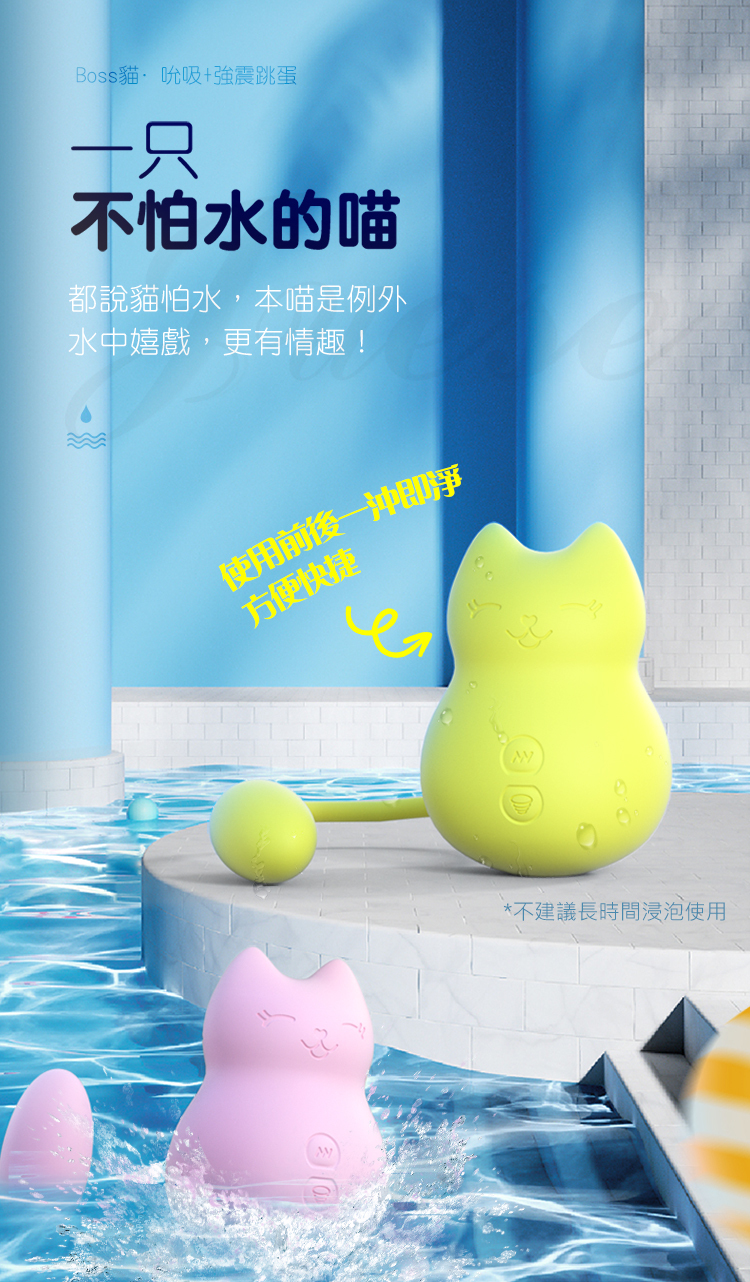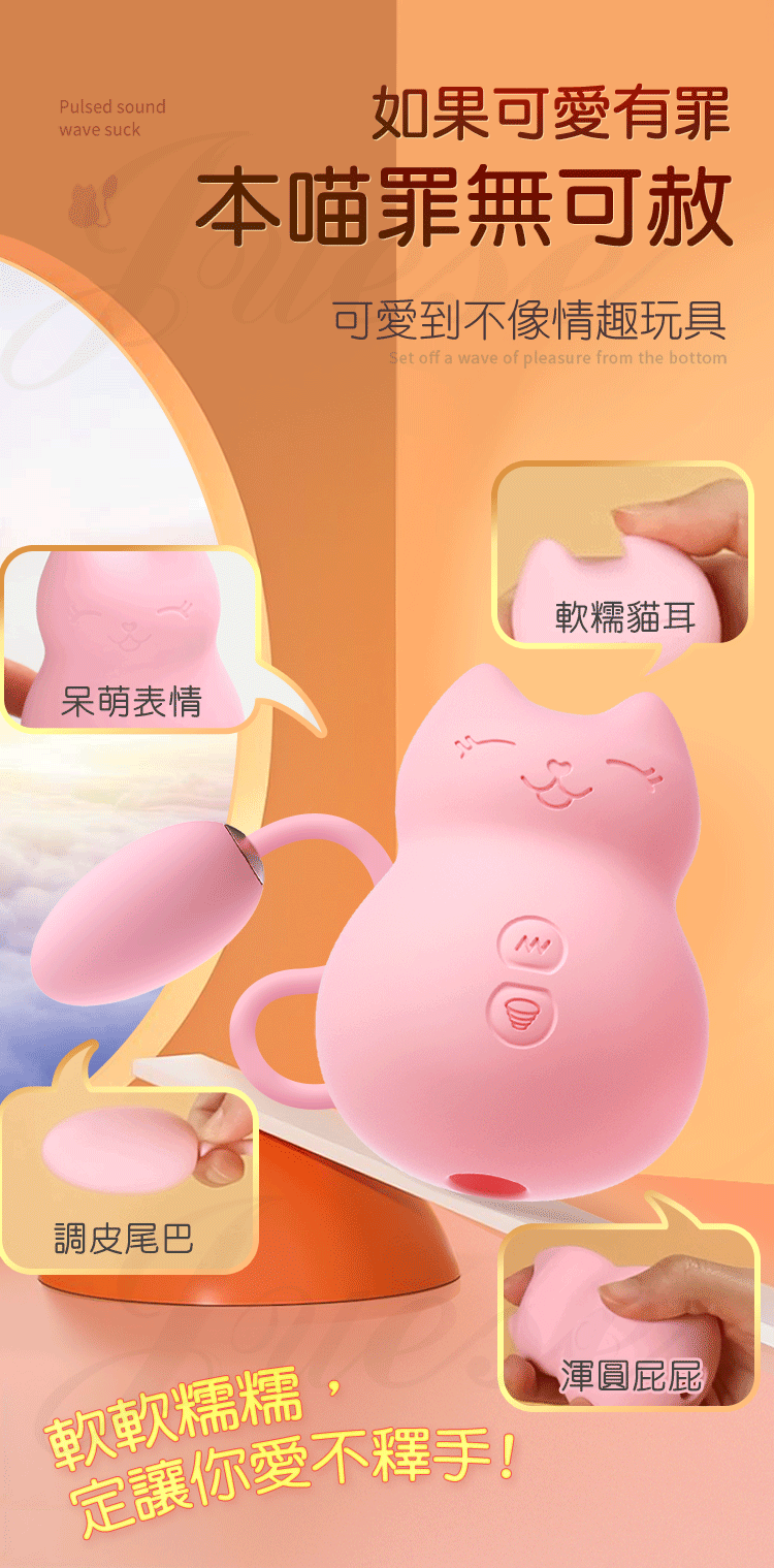 omysky-BOSS貓 10段變頻吸吮浪潮矽膠震動按摩器-蜜桃粉