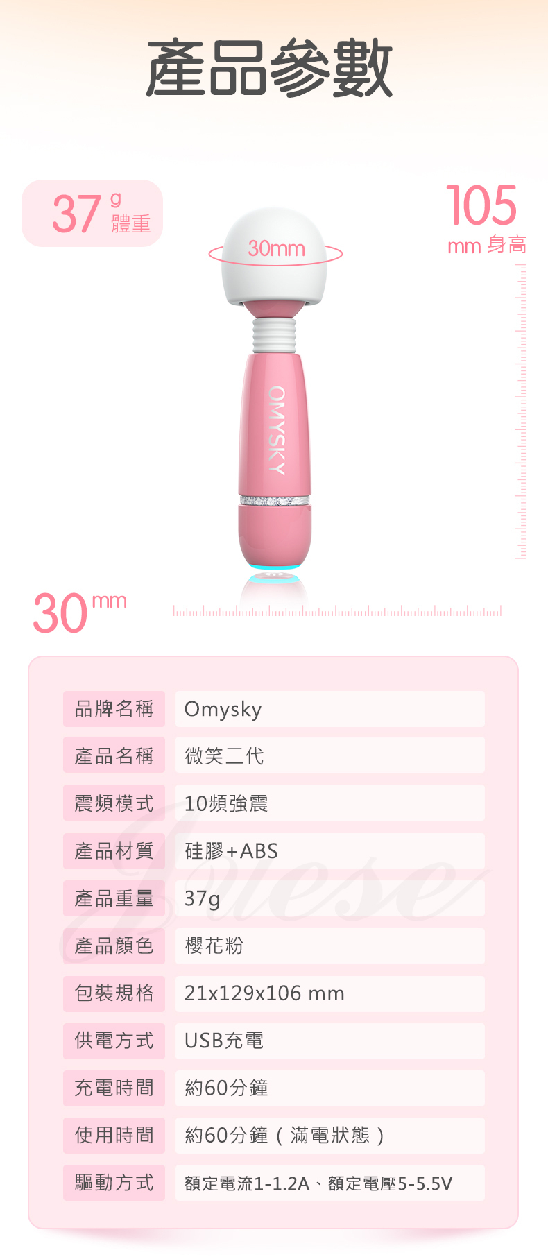 omysky-微笑二代 高質感防水AV女優按摩棒-粉