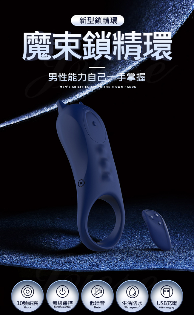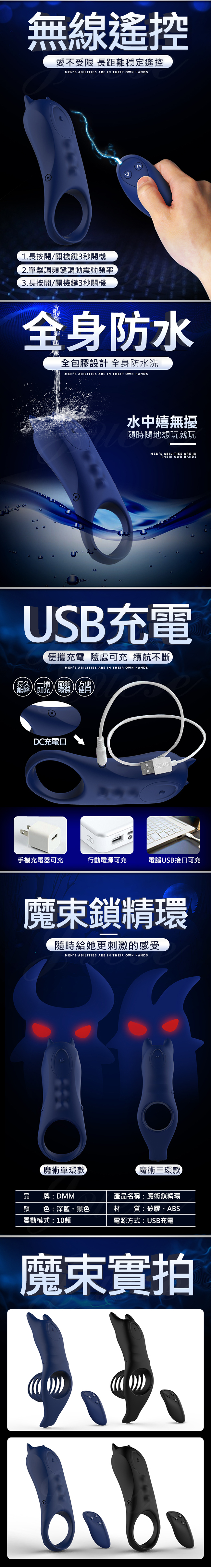 DMM-魔束 10段變頻無線遙控震動矽膠鎖精環-黑(單環)