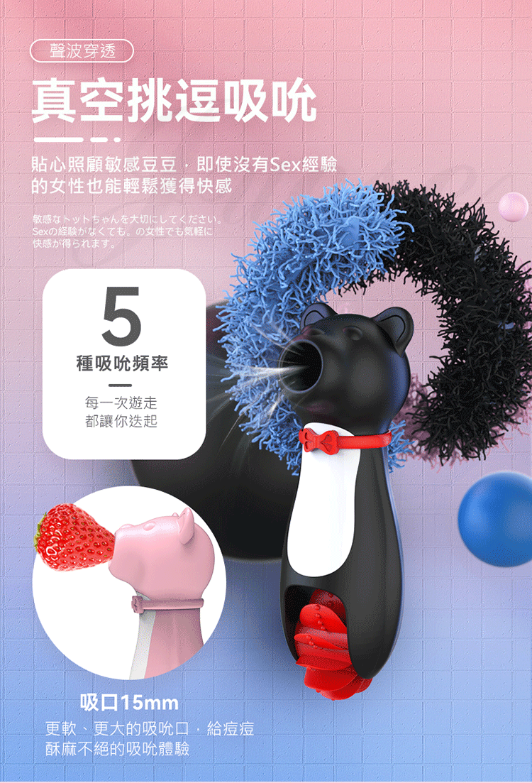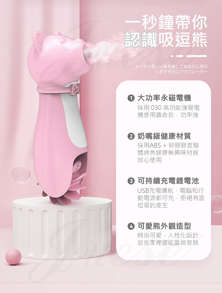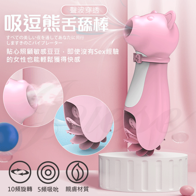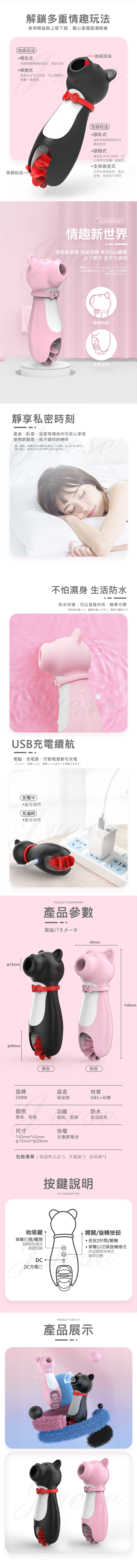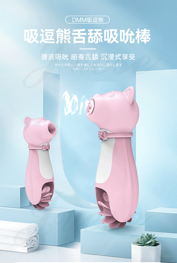 DMM-吸逗熊 5頻吸吮+10頻旋轉 愛潮節奏矽膠按摩棒-粉