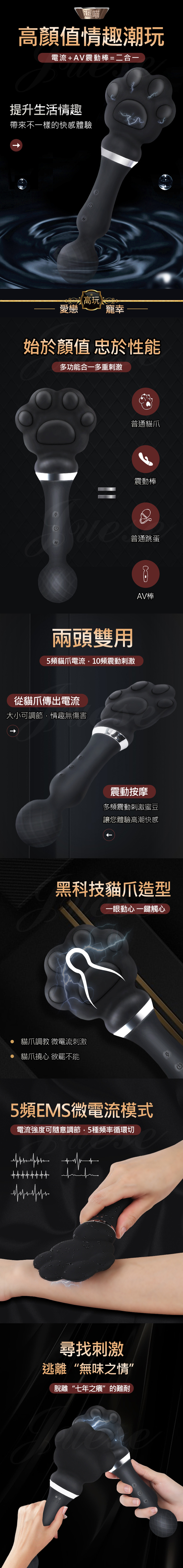 逗喵 5頻電擊x10頻震動一鍵觸心USB充電雙頭AV按摩棒