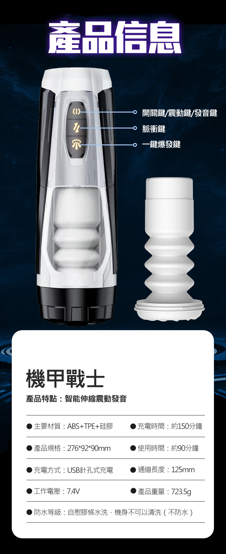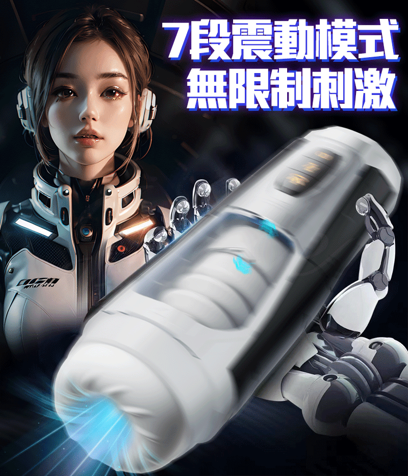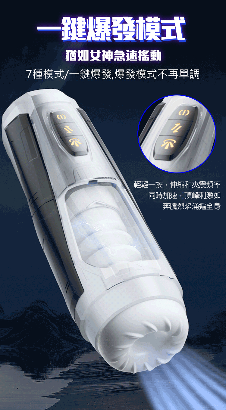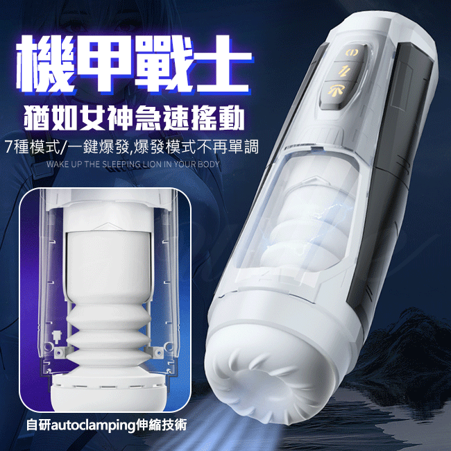 機甲戰士 7段變頻伸縮夾榨摩擦一鍵爆發USB充電式發音電動自慰杯