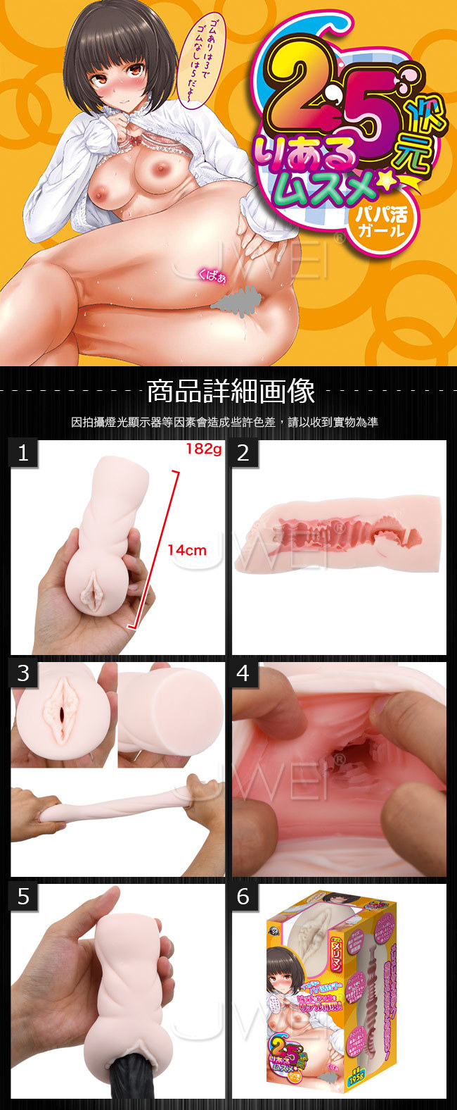 日本原裝進口A-ONE.2.5次元りあるムスメ パパ活ガール 縱紋凸點通道自慰器