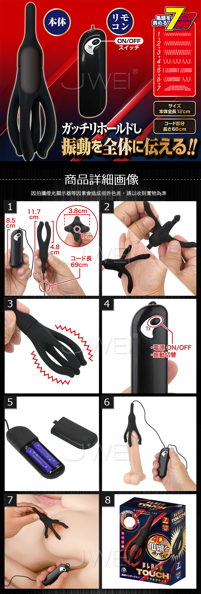 日本原裝進口A-ONE.Black Touch 7段變頻4D觸手龜頭刺激器