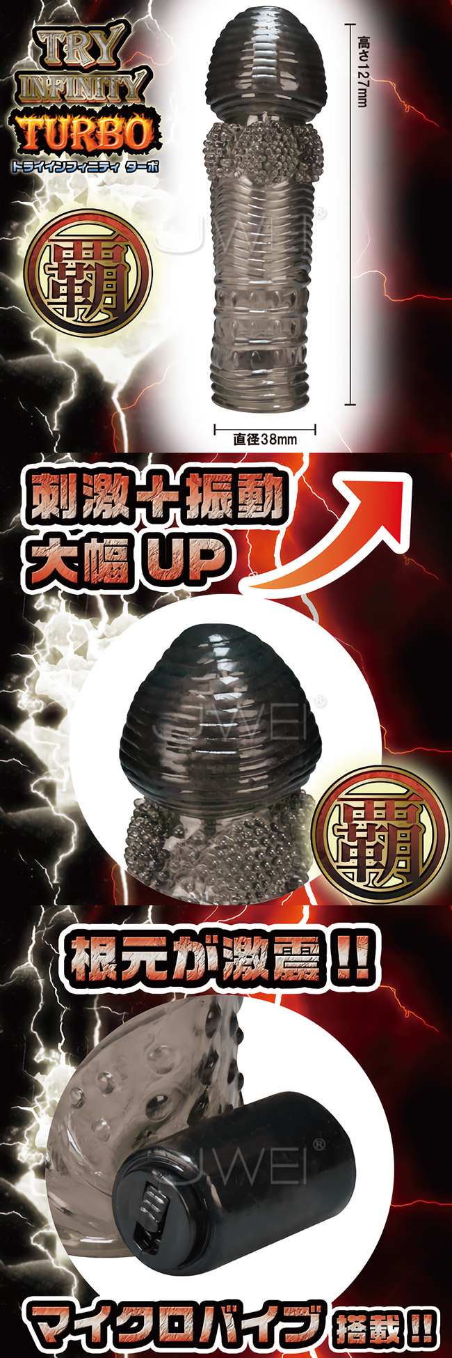 日本原裝進口A-ONE.Try Infinity TURBO 增粗延時震動狼牙水晶套-霸