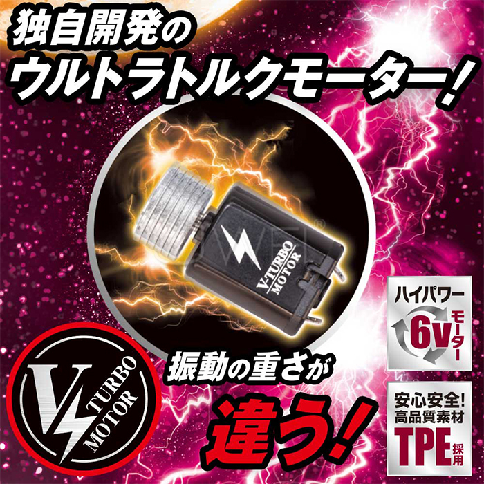 子バイブは最近人気なクリペロを10パターンも搭載しており、中と外から同時にイカせてくれる設計。モーターも6Vのハイパワーなタイプを搭載しているので、すべてのアクションがトルクフルです。