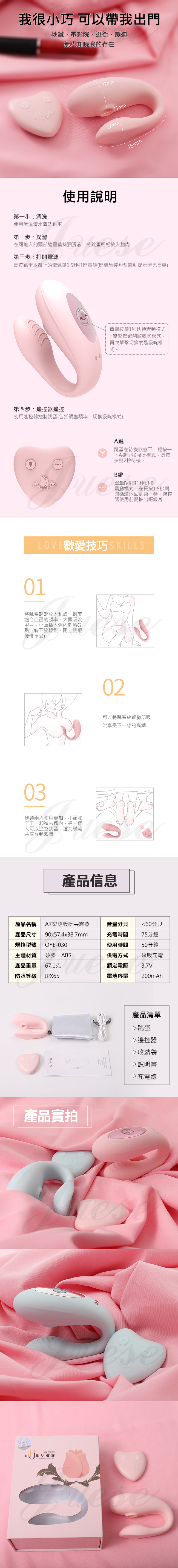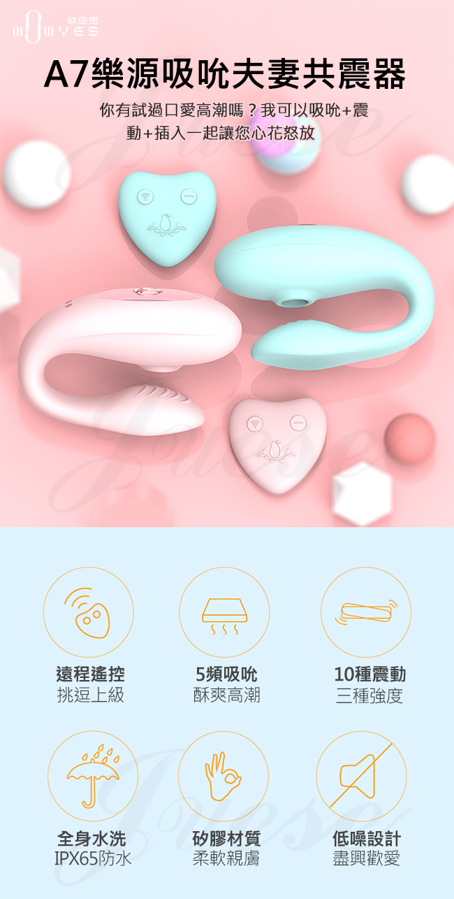 A7愛源 5種吸吮+10段變頻雙重高潮矽膠跳蛋-粉
