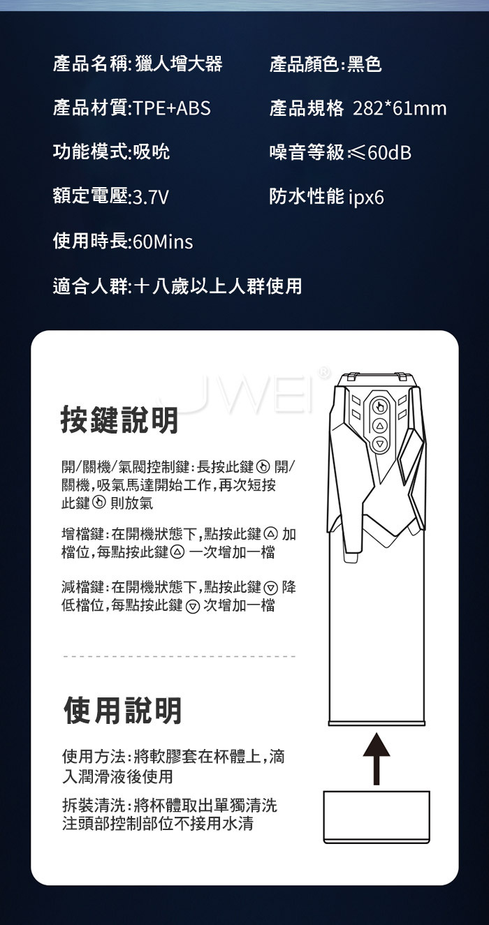 獵人.5頻陰莖訓練助勃持久器-伸縮吸吮+拉伸拉長