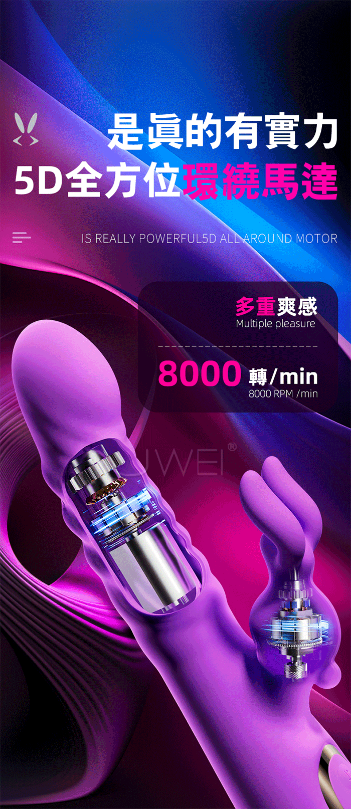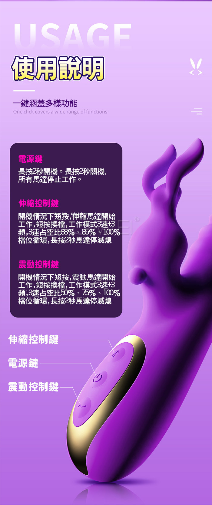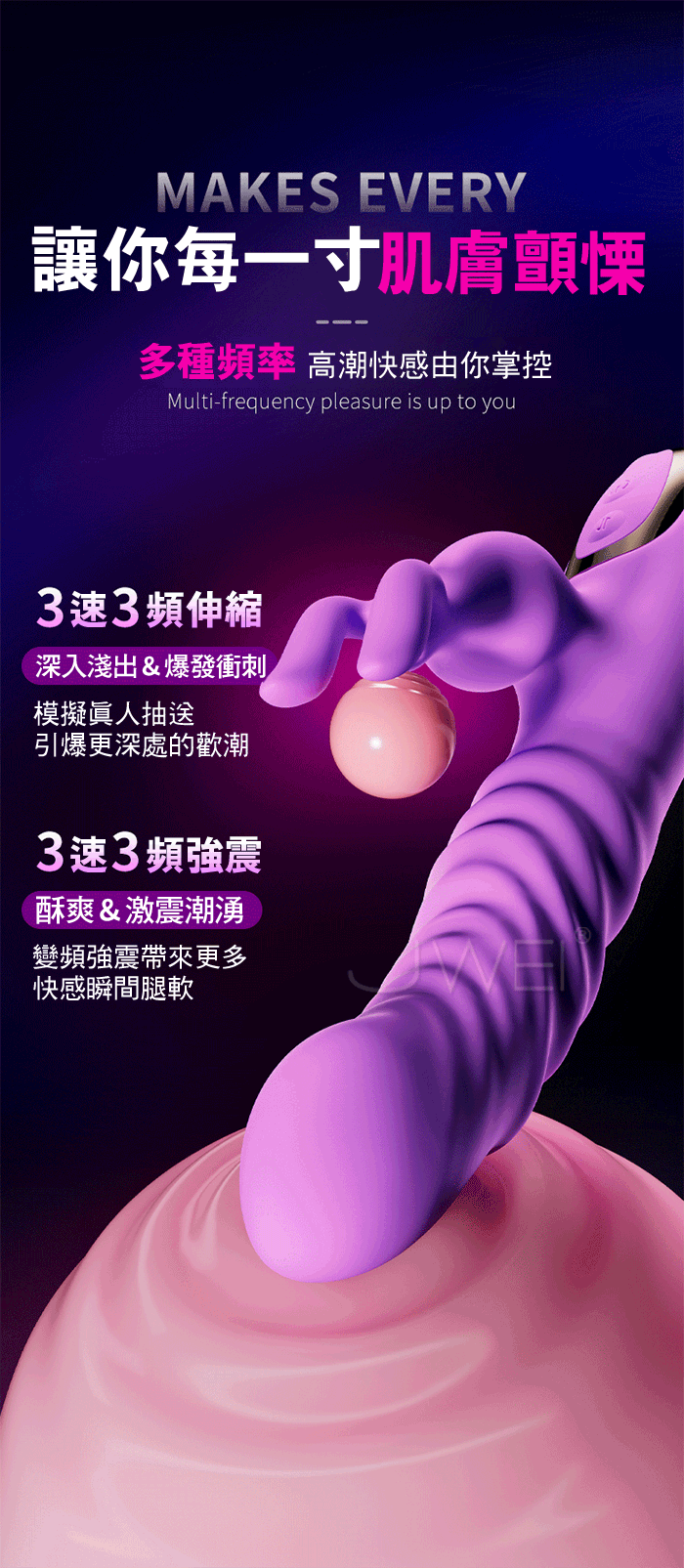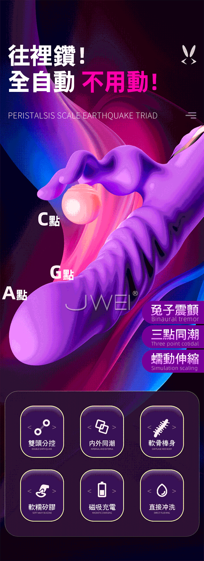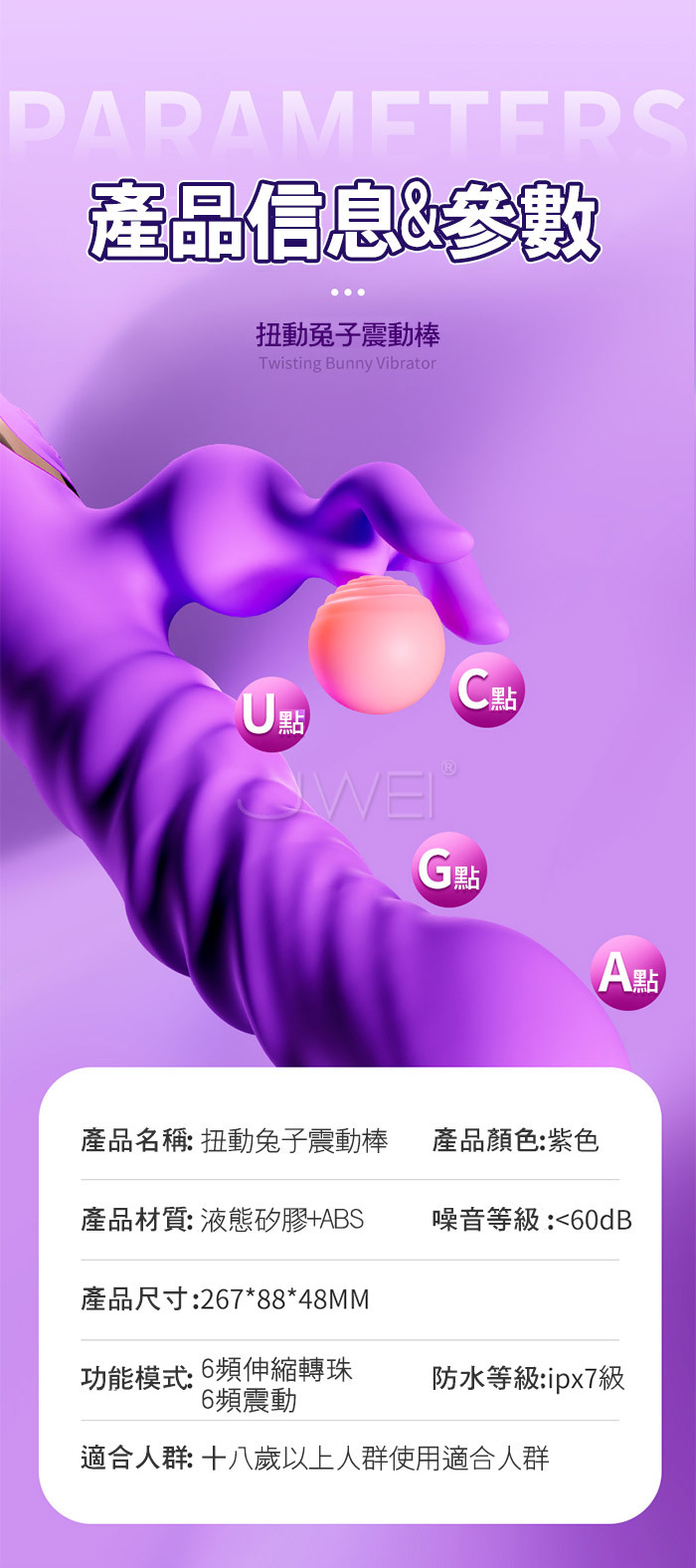 扭動兔子.6x6頻伸縮轉珠秒潮震動按摩棒-一棒頂N棒多種玩法