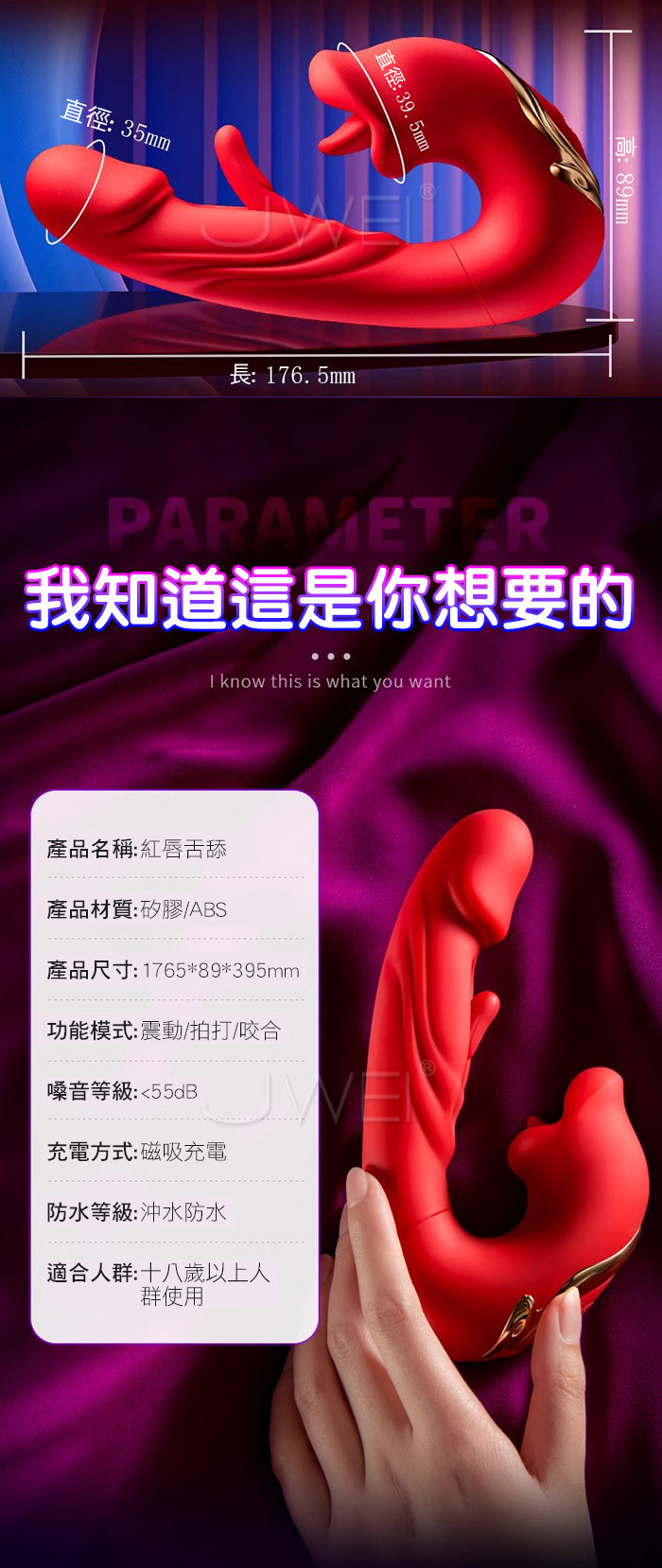 紅唇.7頻摳震5頻咬合舌舔多功能情趣按摩棒