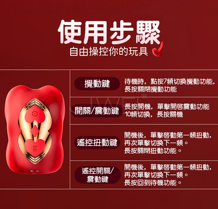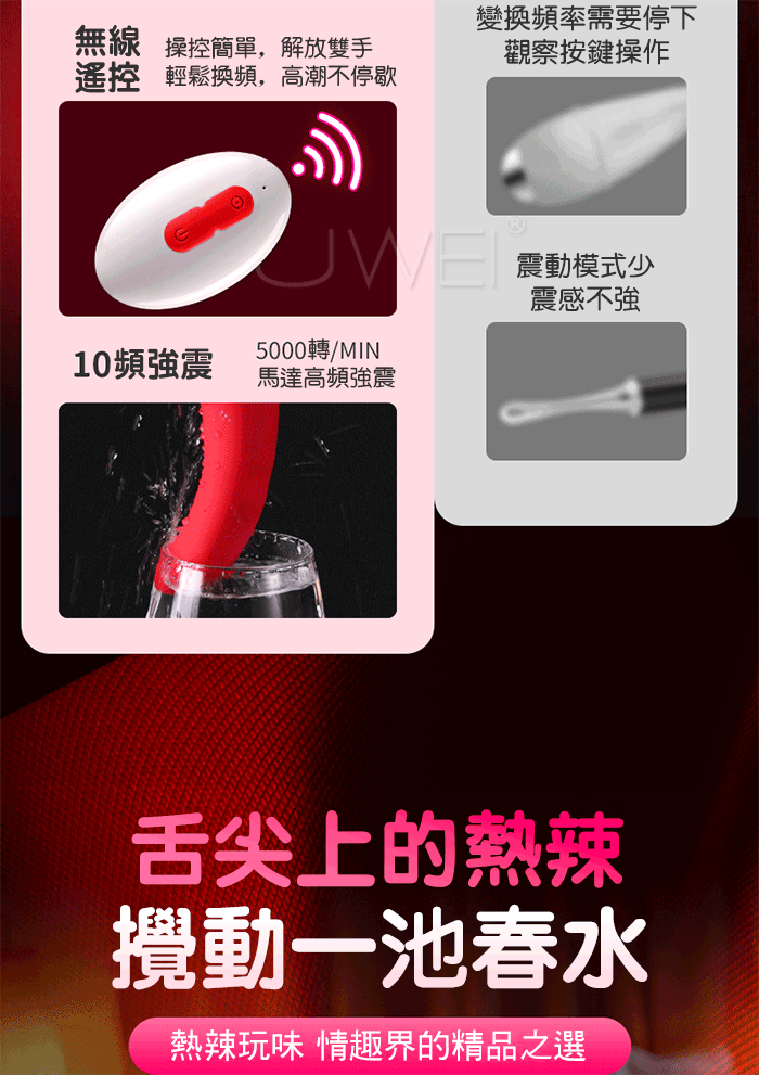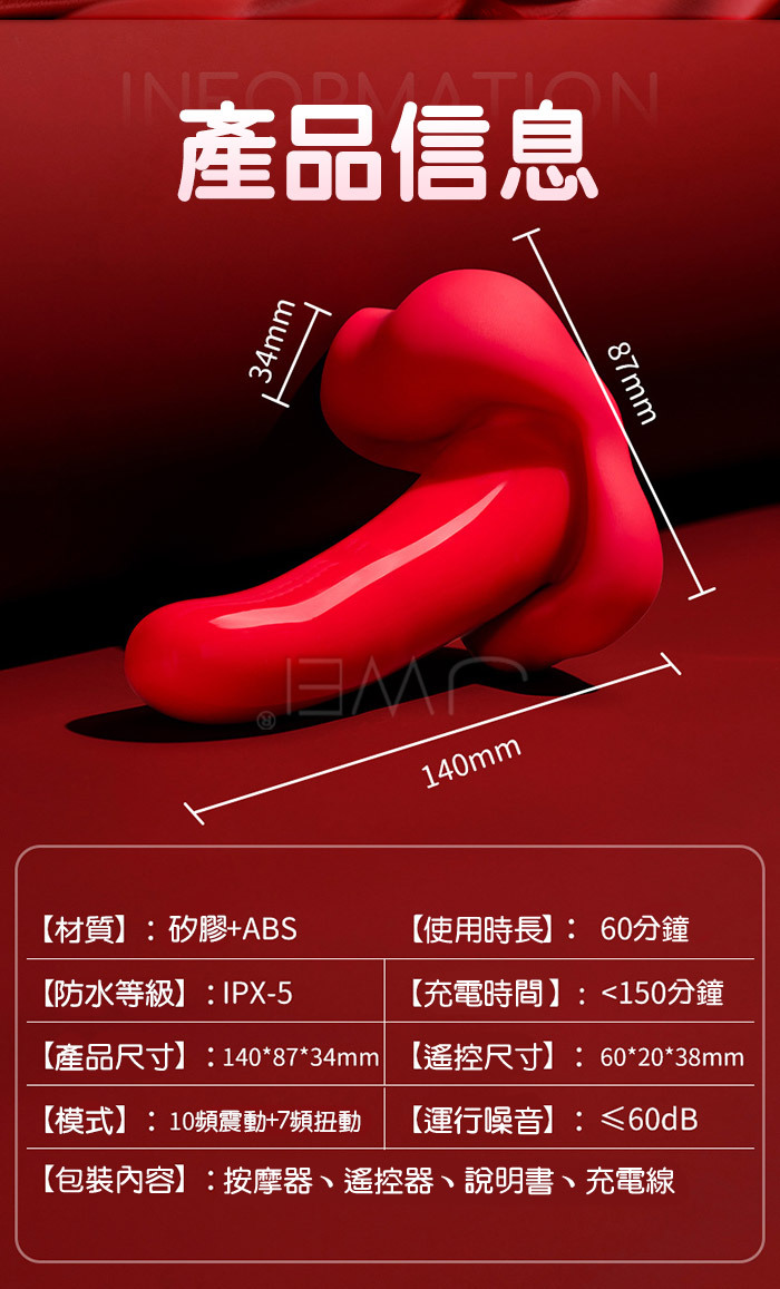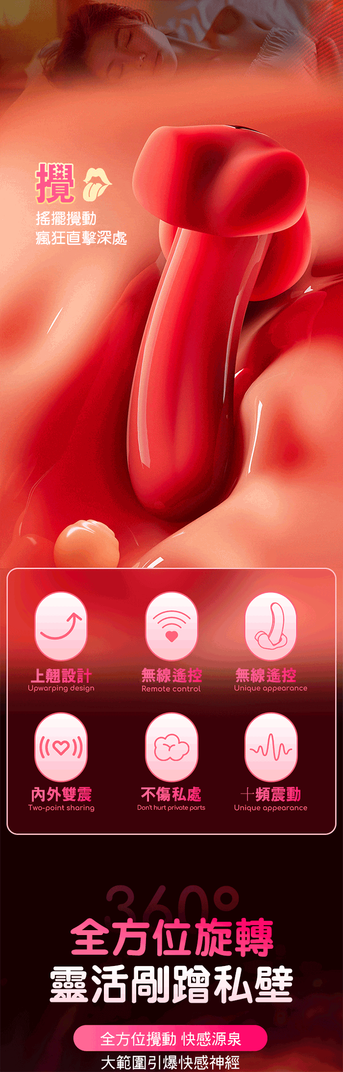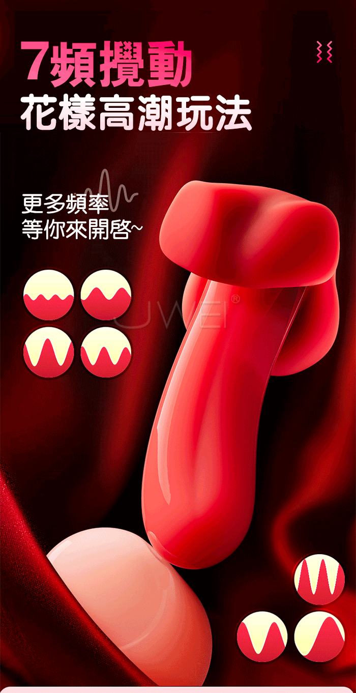 熱辣大舌頭.7頻360°全方位旋轉舌舔攪動10頻酥麻強震遙控穿戴跳蛋一池春水