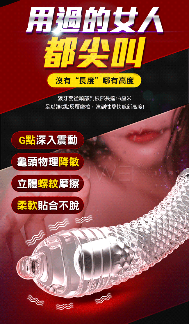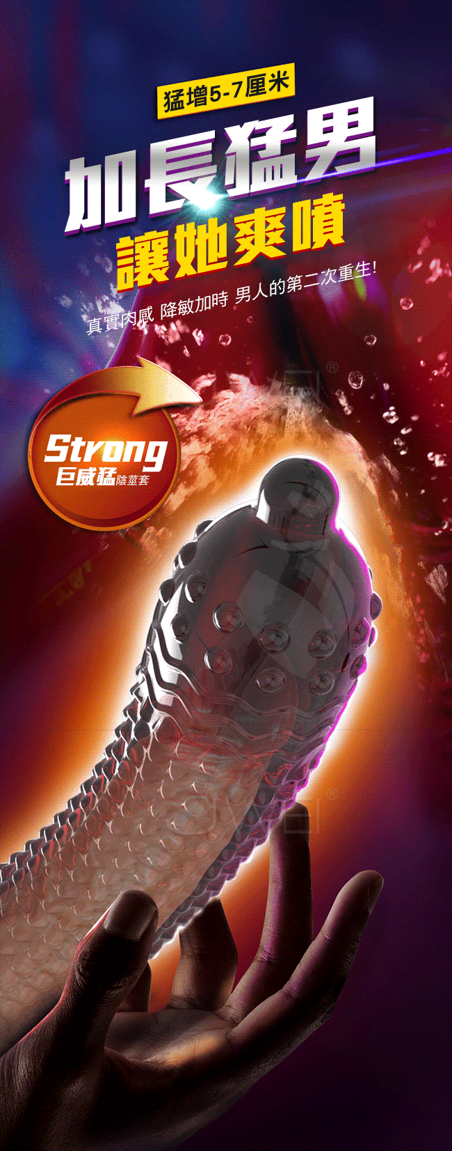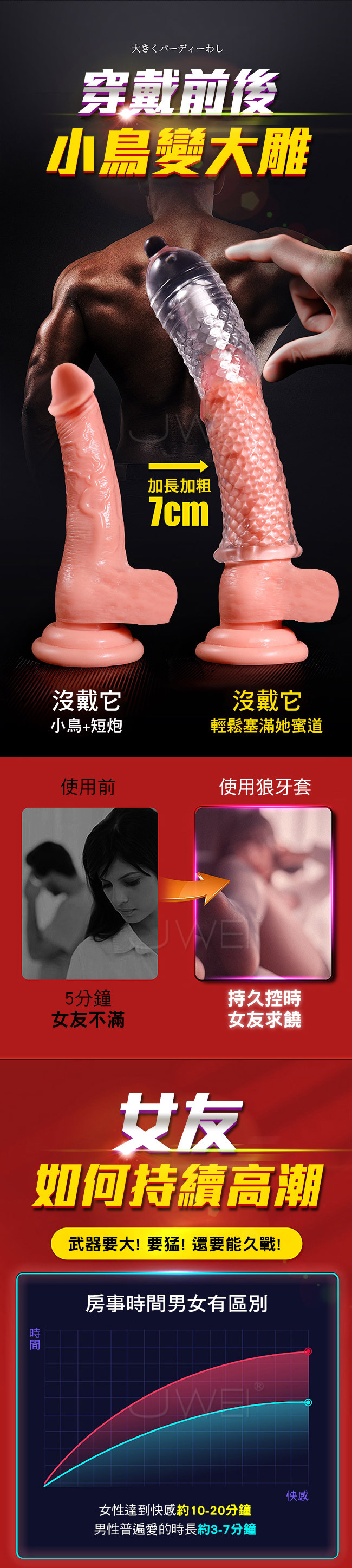 加長猛男讓她爽噴真實肉感降敏加時使男人的第二次重生!狼牙套從頭部到根部長達足以讓G點反覆摩擦,達到性愛快感新高度!深入震動迅速點燃敏感神經區域,穿戴前後讓小鳥變大雕。快速沖洗可重覆使用,舒適抑菌征服她更要愛護她~