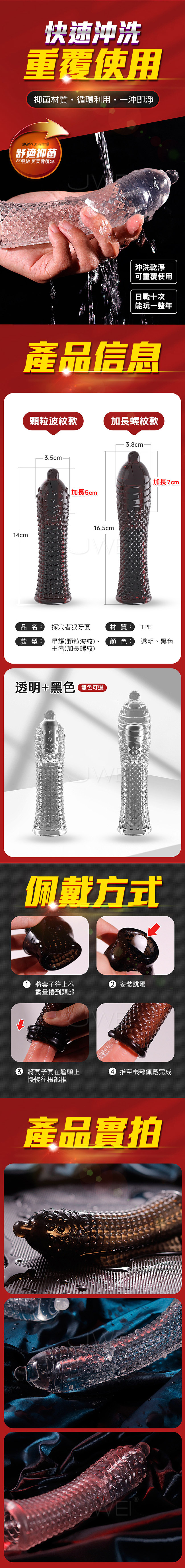 探穴者.星耀 增粗加長顆粒波紋水晶震動狼牙套-透黑