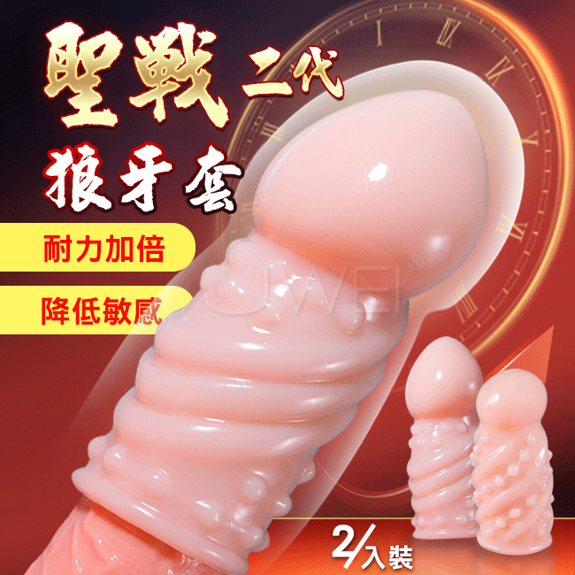聖戰二代.降敏加時螺紋顆粒龜頭套(膚色款二入組)