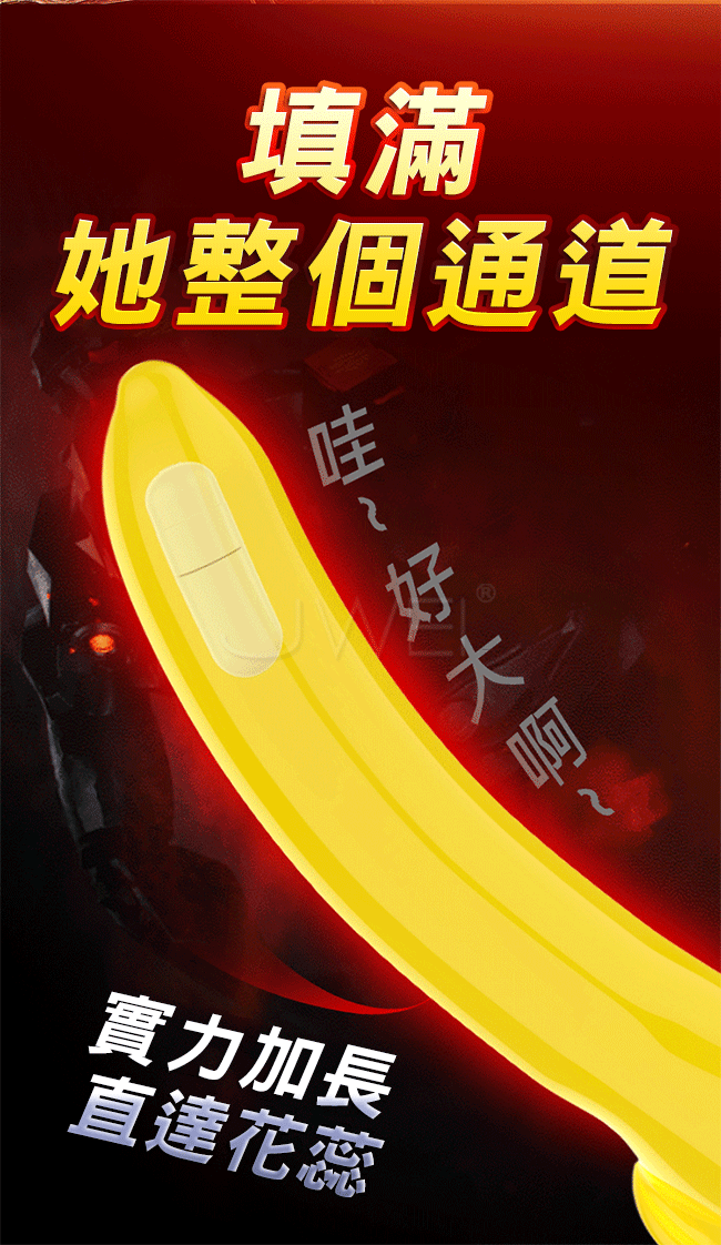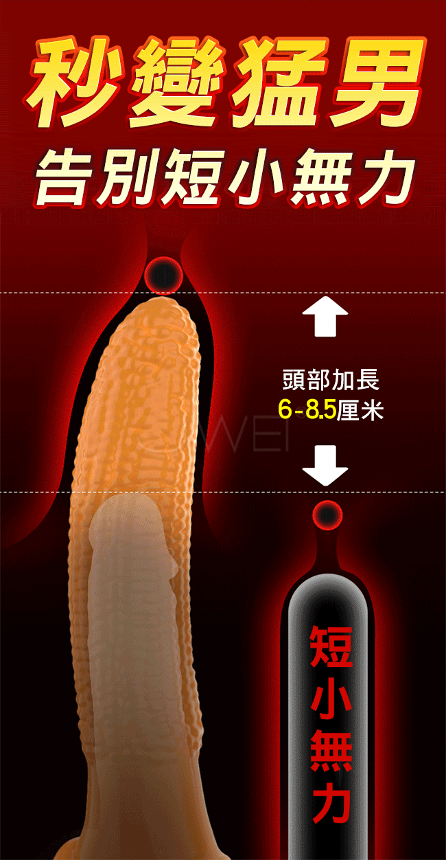 加長震動,鎖莖輸出,長時堅挺,變大變粗,整個戰鬥力狂飆!黃瓜款,頭部加長8.5公分,修長黃瓜、深處探索、熟女狂喜,秒變猛男,告別短小無力,填滿她整個通道,實力加長直達花蕊;酥麻強震,快感洶湧噴來,女友喊不停!
