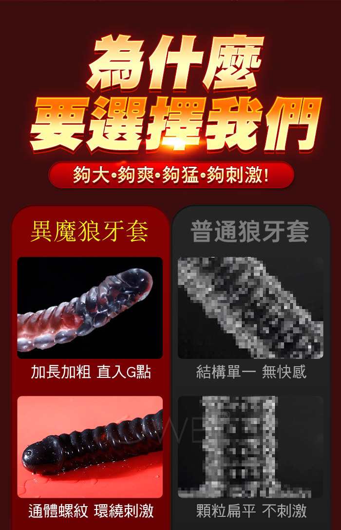 異魔加長套-螺紋增遞,連綿不絕的螺紋刺激摩擦內壁,加長加粗激情頂入, 直入G點,刺激環繞,夠大 夠爽 夠猛 夠刺激;小跳蛋大能量,酥麻入體,震顫每個敏感神經,蛻變展雄風! 激!