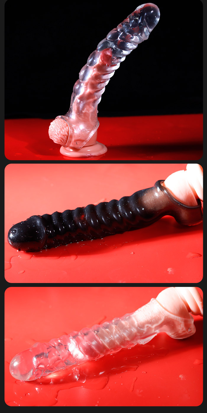 震動異魔.螺紋增遞 撩舔G點加粗加長老二套-透黑