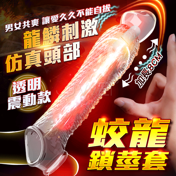 蛟龍.仿真龜頭龍鱗刺激水晶狼牙固精套-透明震動